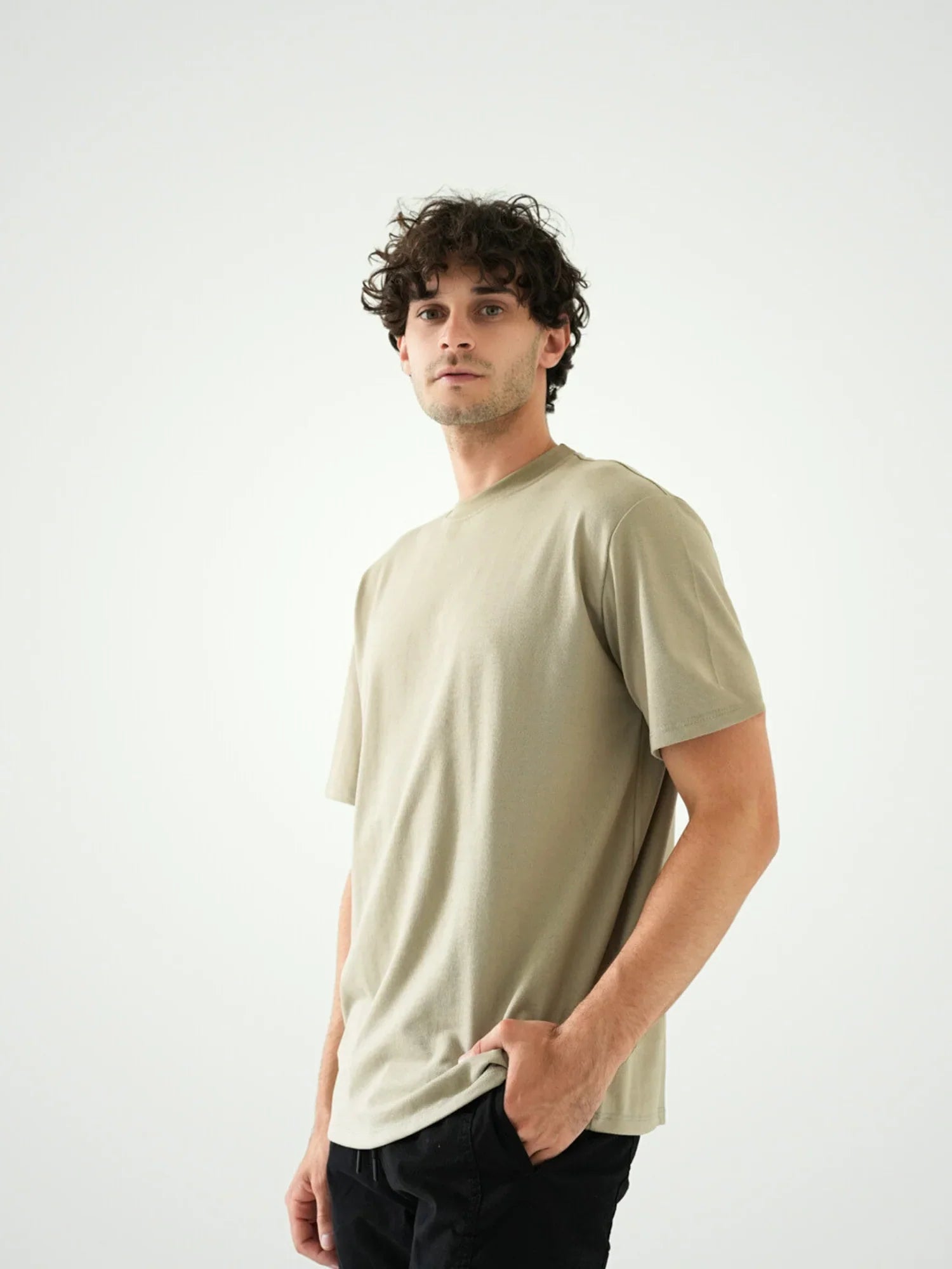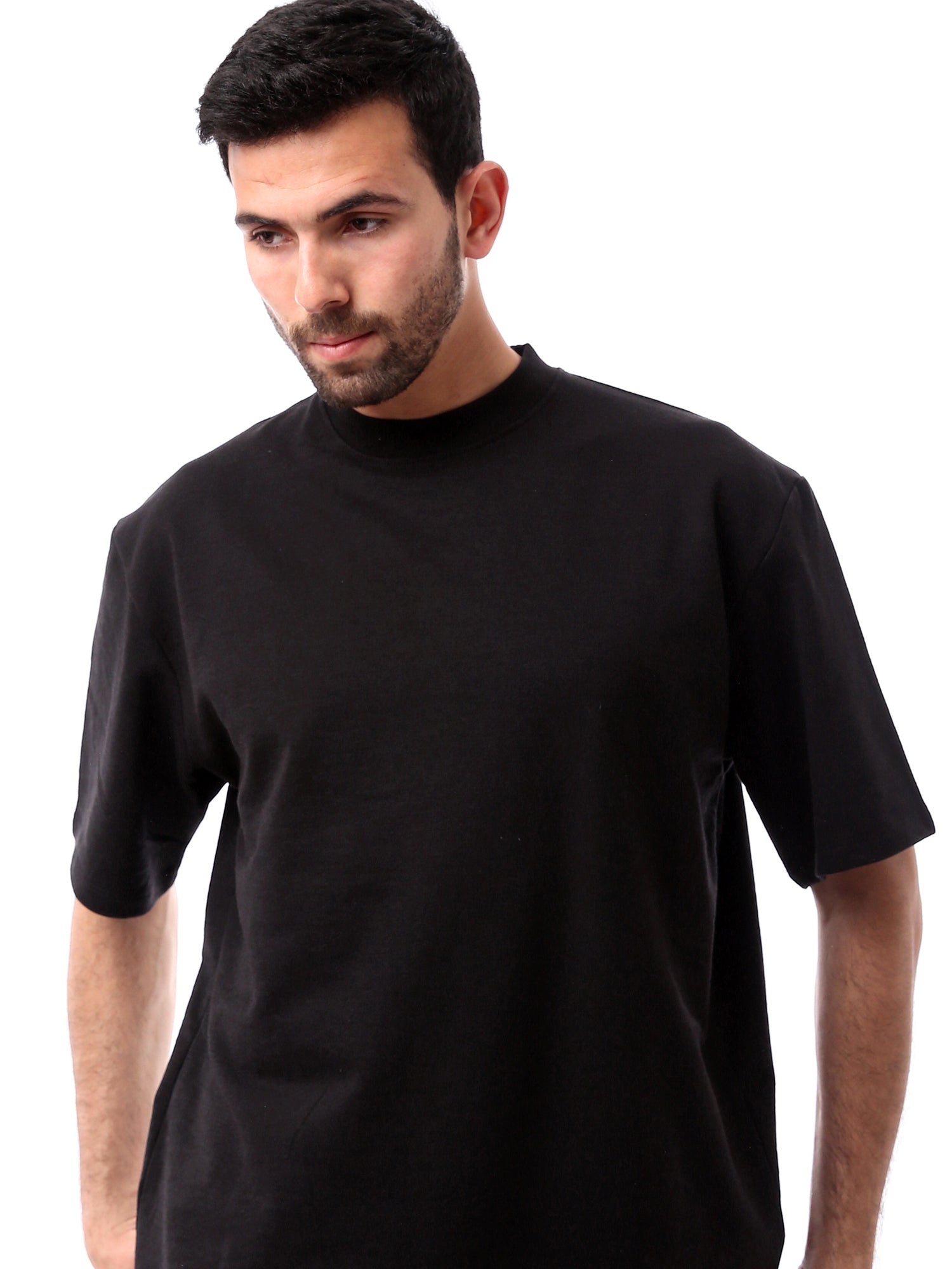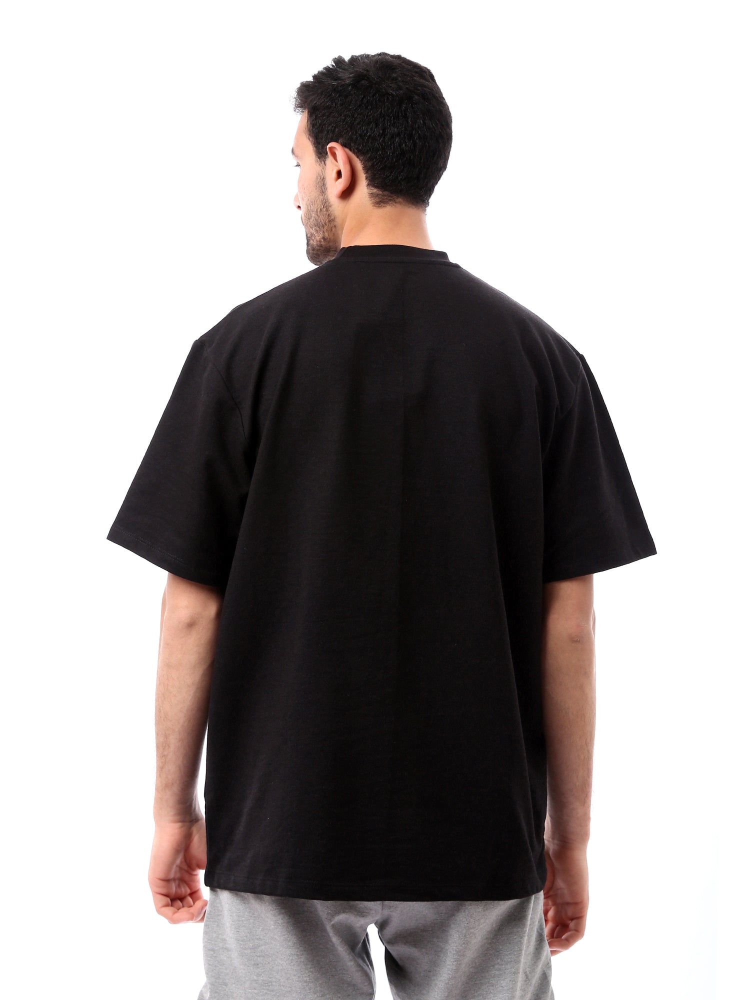 T-shirt pour homme de couleur noire simple, conçu dans un style moderne avec un tissu en coton confortable. Il se distingue par ses manches larges et sa coupe décontractée, ce qui en fait un choix idéal pour les looks quotidiens ou pour les séances d'entraînement. Facile à assortir avec des pantalons de sport ou des jeans, il constitue un choix parfait pour toutes les saisons grâce à son design simple et pratique.