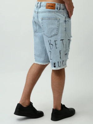 Short en jean pour homme au design moderne inspiré du style jeune, avec des détails déchirés et des touches graphiques qui apportent un caractère audacieux à la tenue. Il se décline dans des coloris clairs faciles à assortir et présente une longueur pratique au-dessus du genou, offrant confort et liberté de mouvement. Sa coupe confortable est idéale pour un usage quotidien, parfaite pour l’été, les sorties casual, les voyages ou les looks jeunes et décontractés.