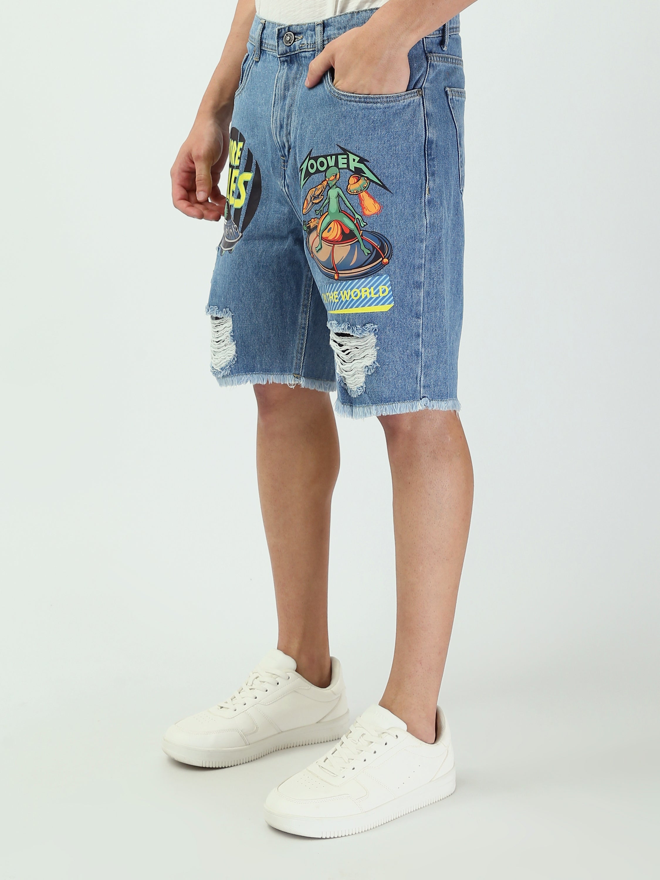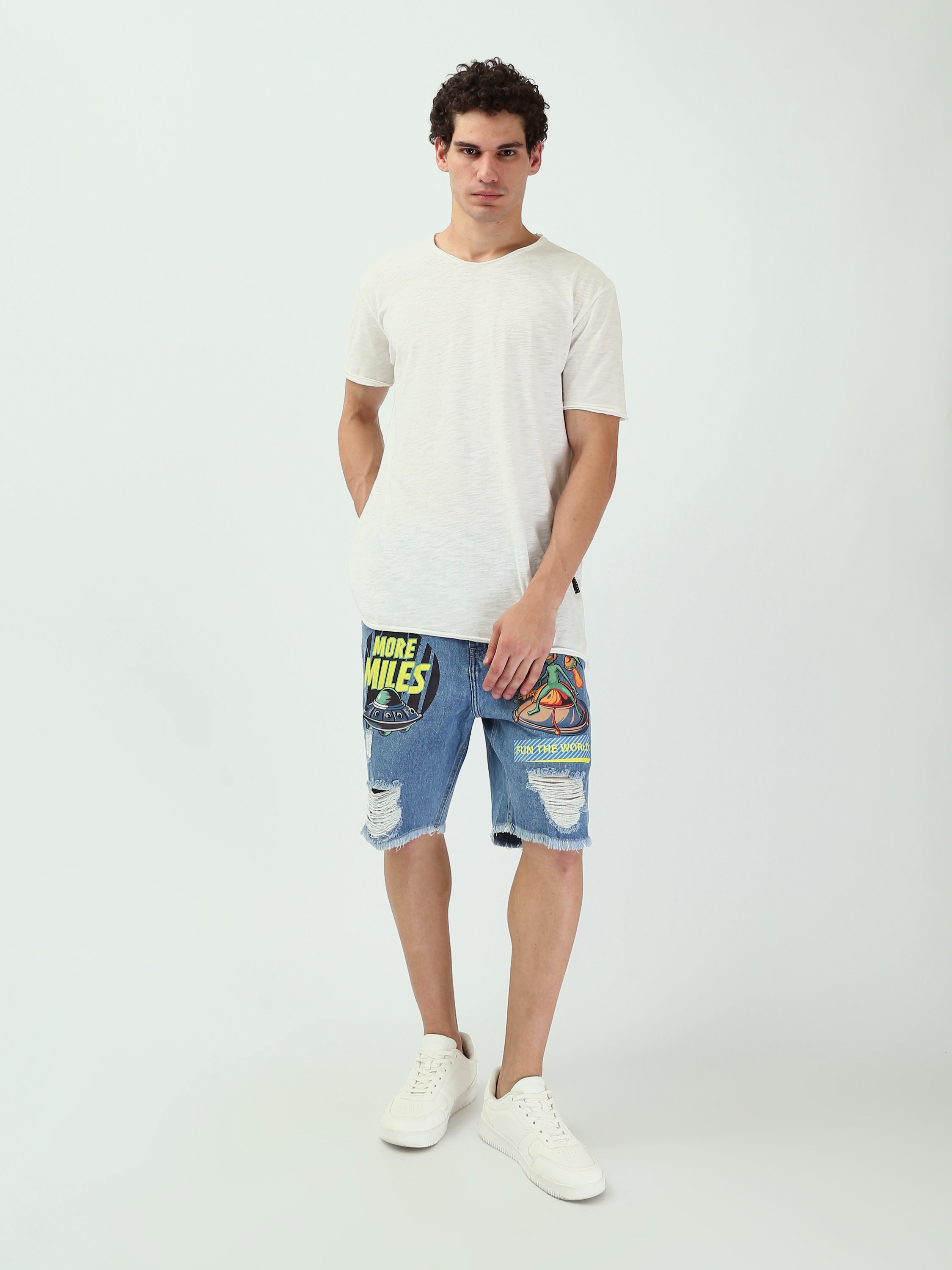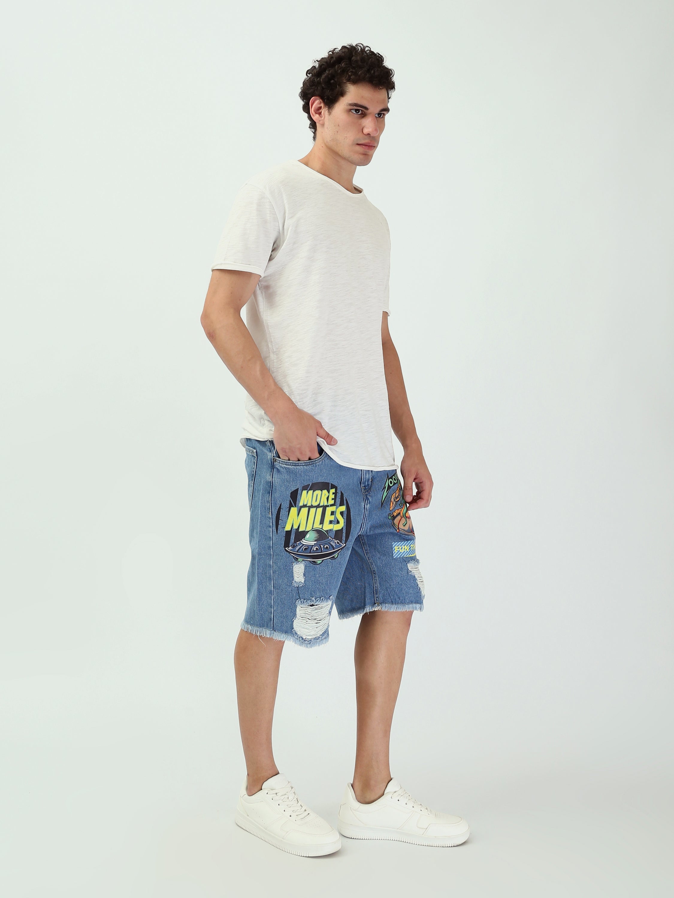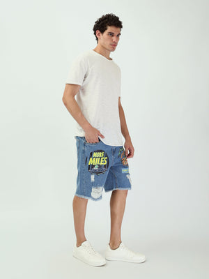Adoptez un look unique avec ces shorts en jean tendance, ornés de graphiques amusants et audacieux. Parfaits pour les journées estivales, ils allient confort et style. Fabriqué en jean de qualité, ce modèle est idéal pour une tenue décontractée. Les graphiques "More Miles" et "Zoover" ajoutent une touche de fun et d'originalité à votre garde-robe.