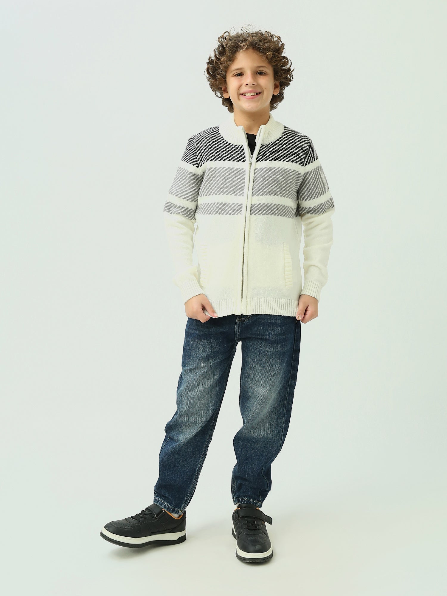 Adoptez un look à la fois moderne et pratique avec ce cardigan garçon à fermeture éclair, parfait pour les journées fraîches. Son design rayé ajoute une touche tendance à son style quotidien, tandis que sa matière douce et chaude offre un confort optimal tout au long de la journée. La fermeture éclair complète facilite l'enfilage, et les poignets élastiques et le col garantissent un ajustement parfait pour plus de chaleur et de confort. Avec ses poches avant pratiques, ce cardigan est idéal pour l'école, les sorties ou simplement pour un look décontracté et élégant.