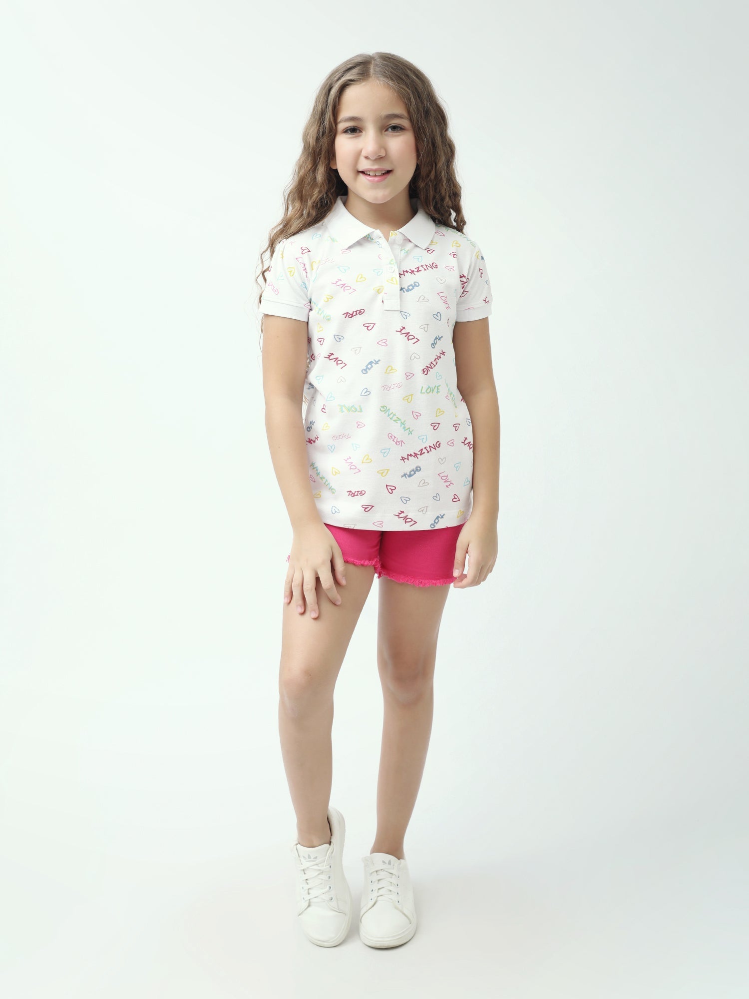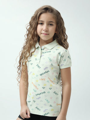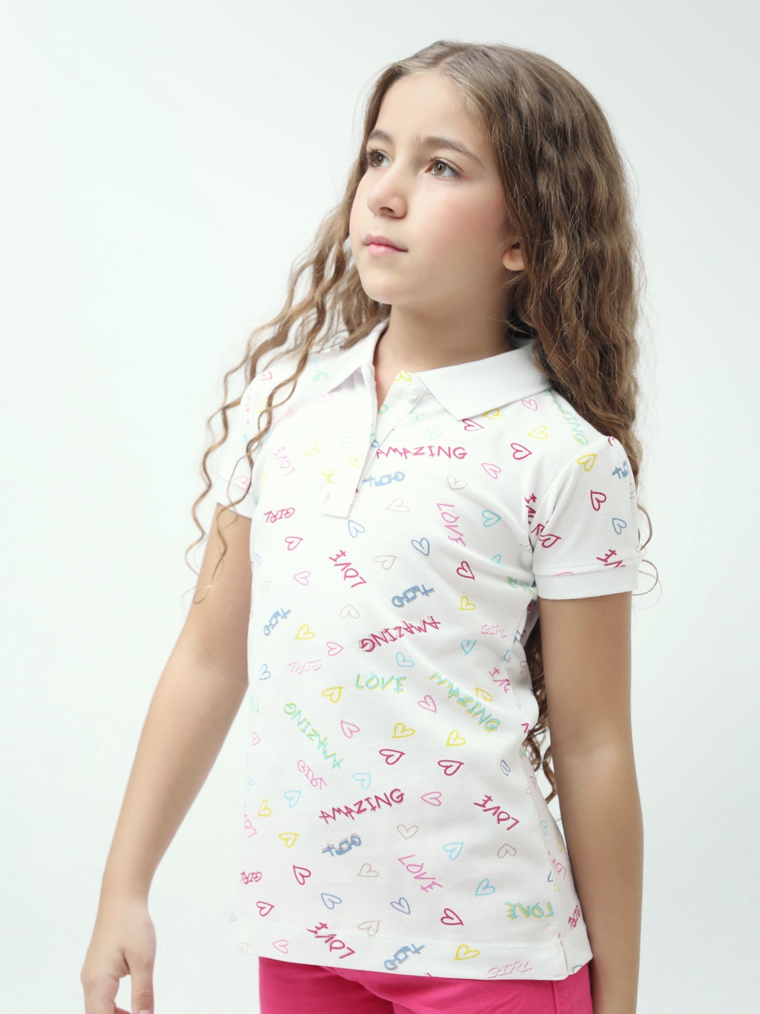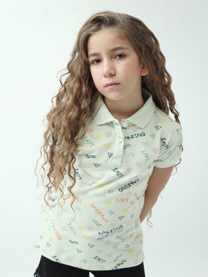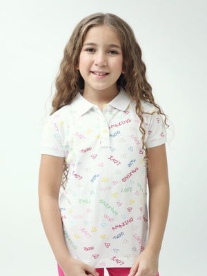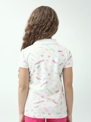 Polo ado fille imprimé cœurs & messages colorés manches courtes - POS24SAPI71011MR1