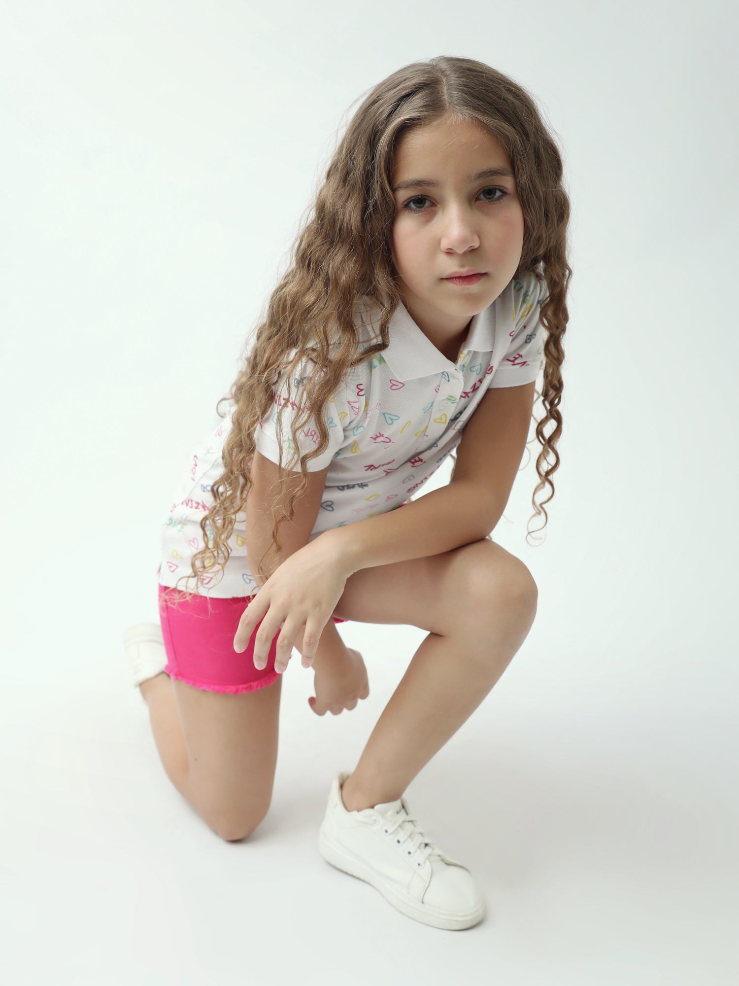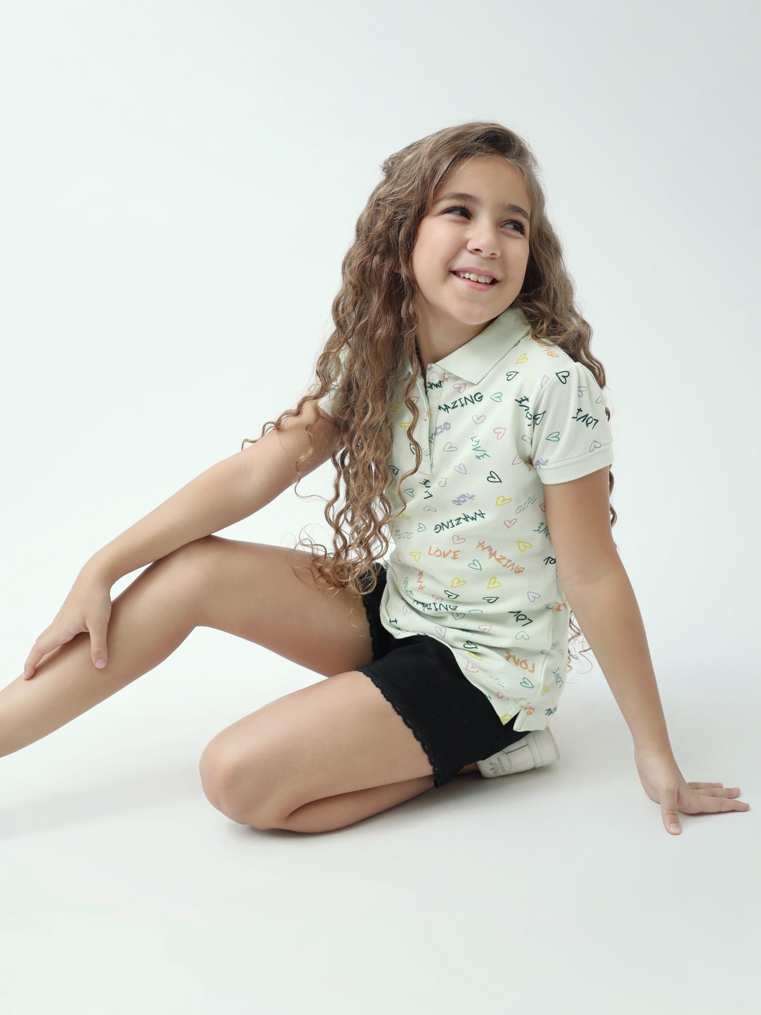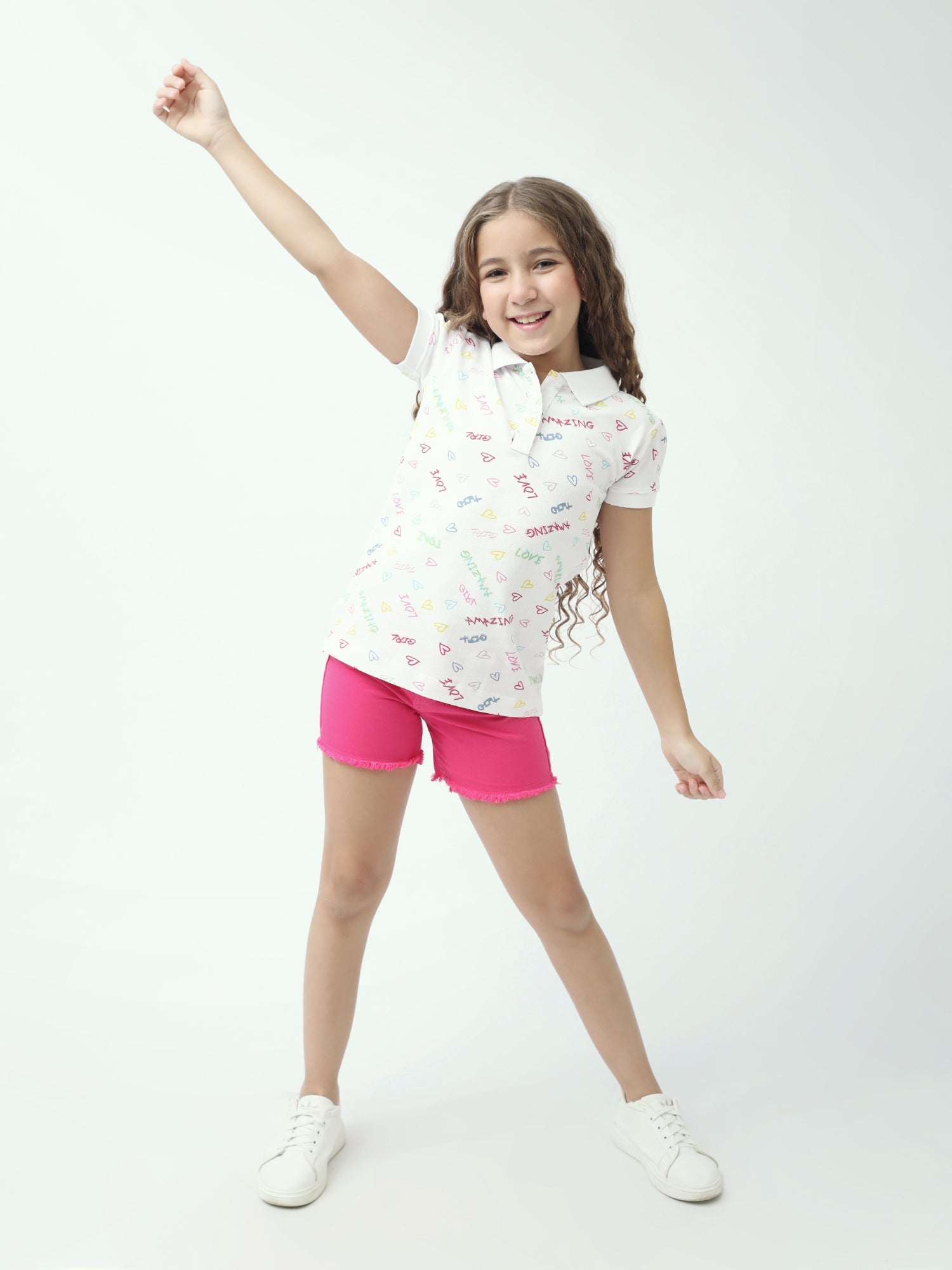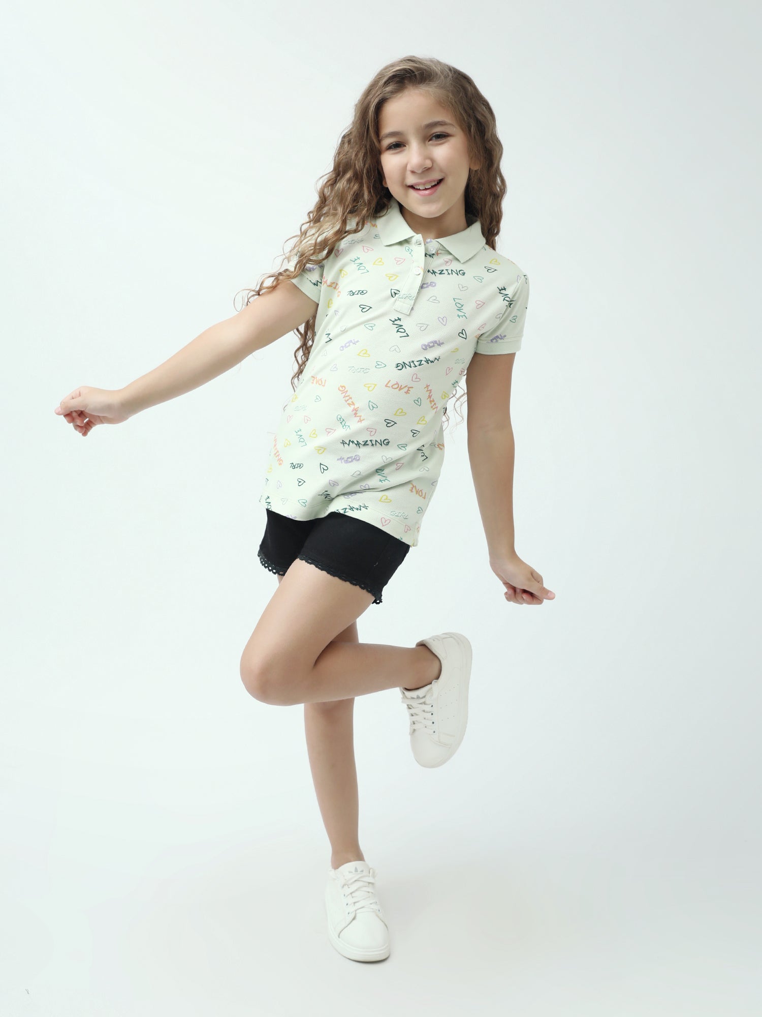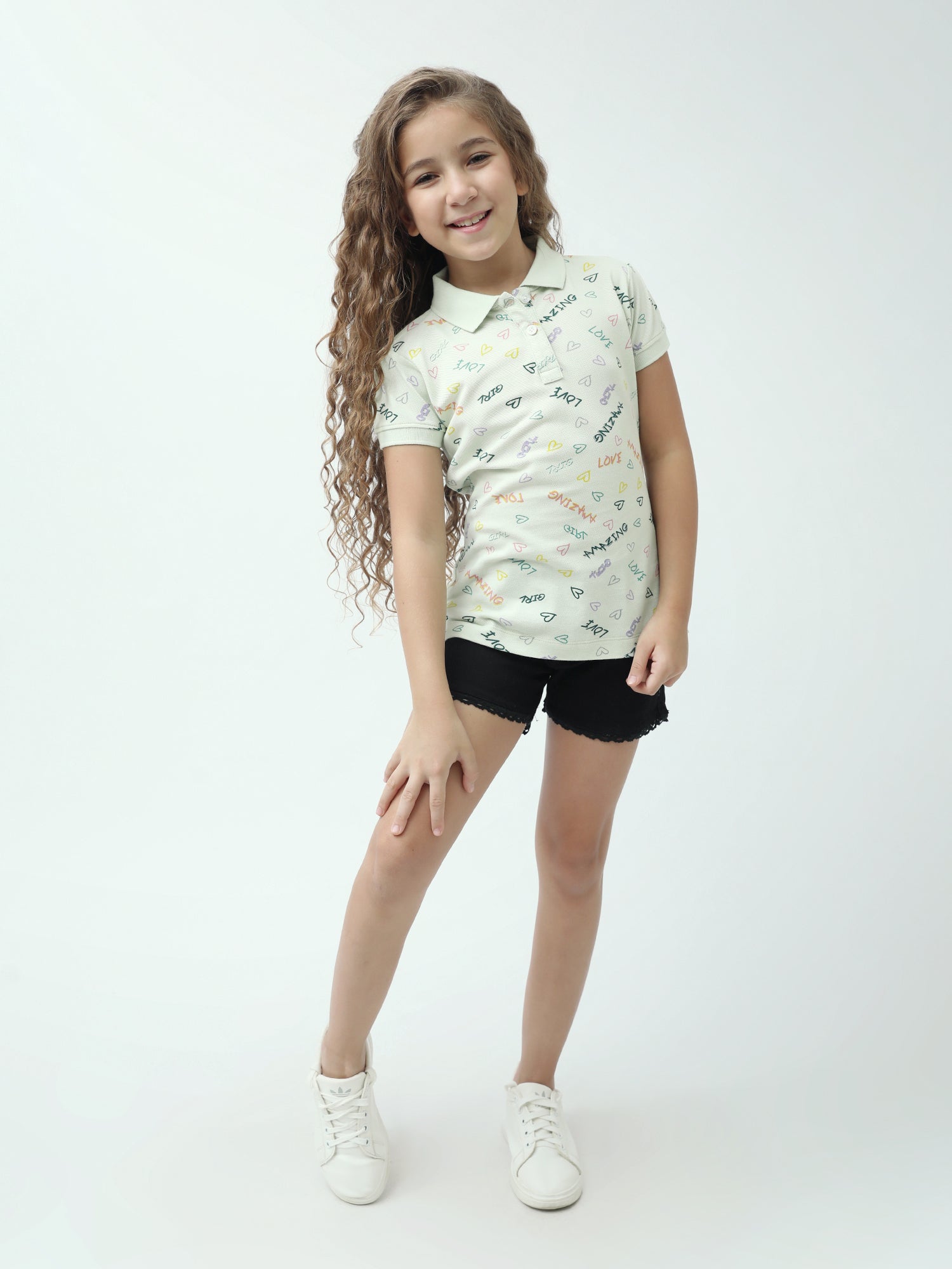 Apportez une touche fun et douce au look de votre ado avec ce polo fille à imprimé all-over. Sur fond clair, on retrouve des petits cœurs et des messages colorés (love, amazing, girl…) pour un style jeune, lumineux et facile à porter.