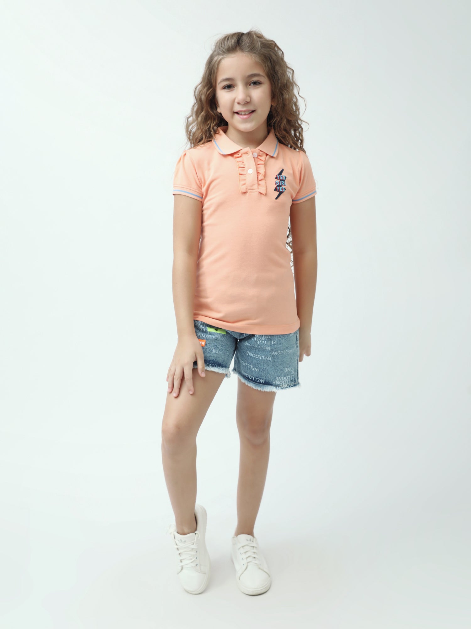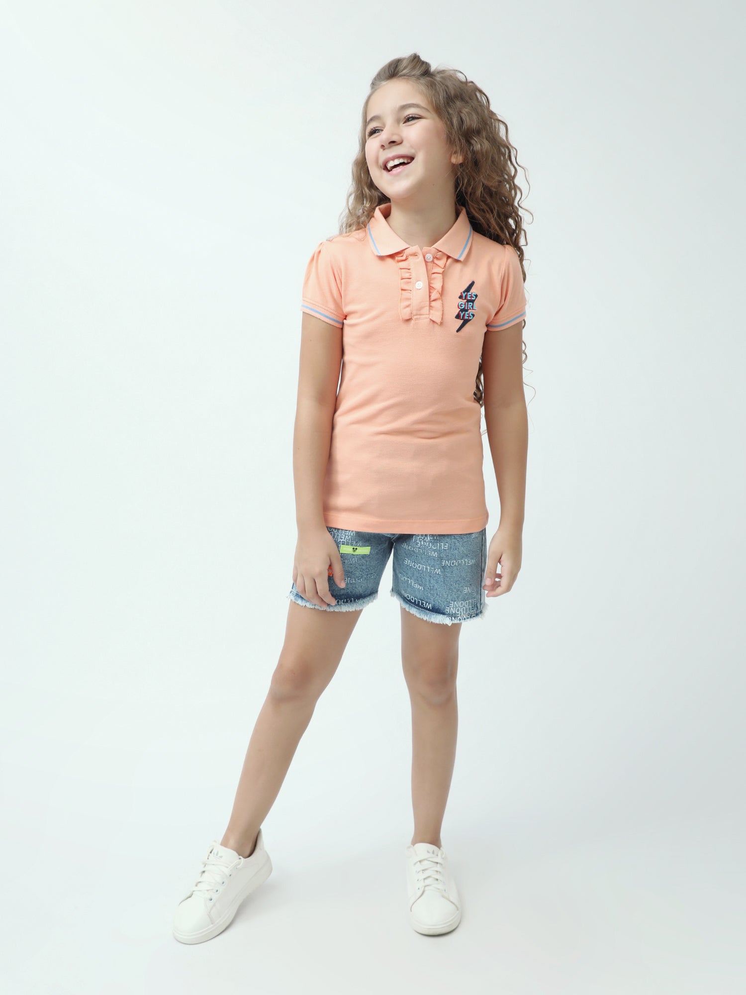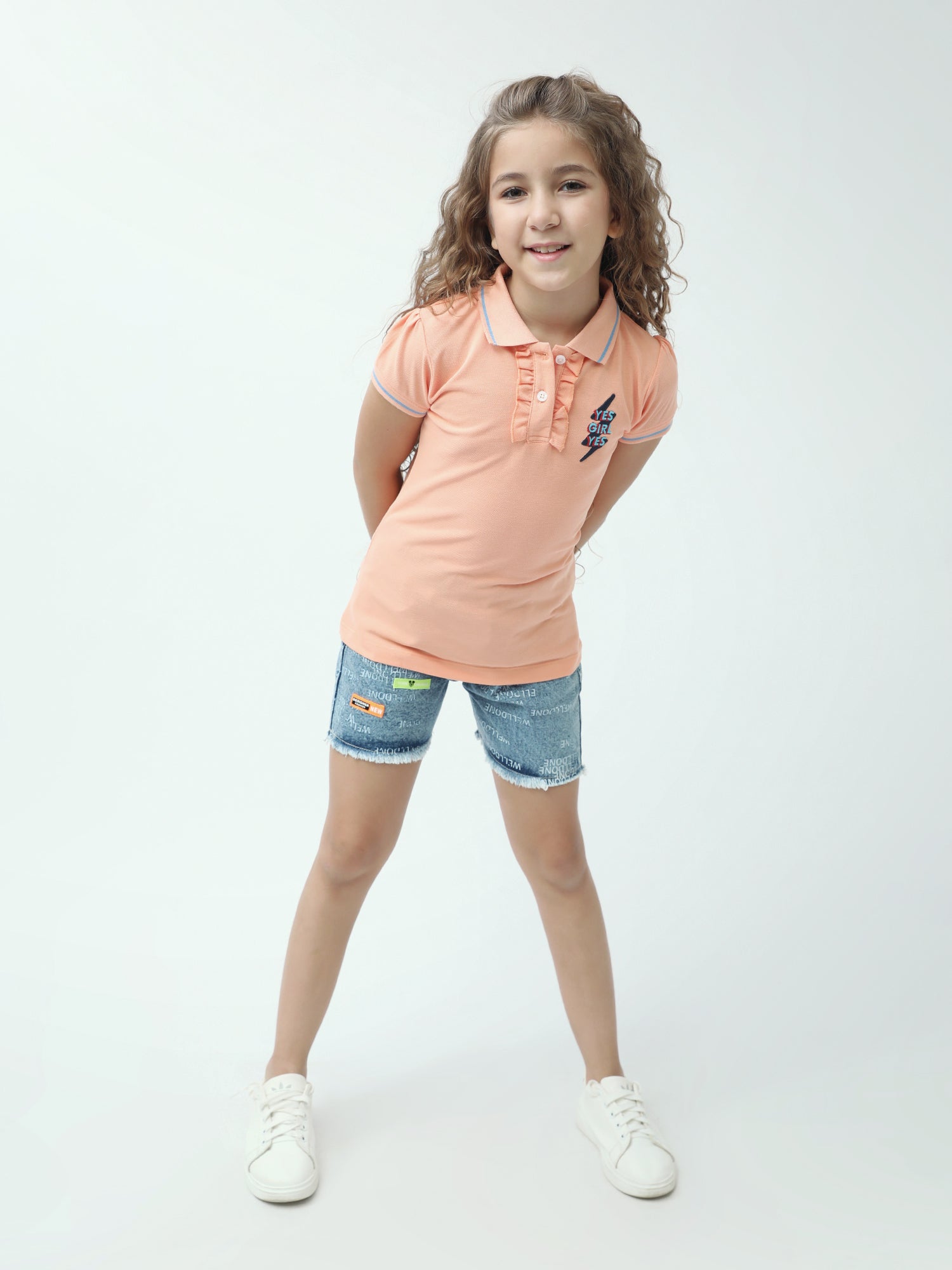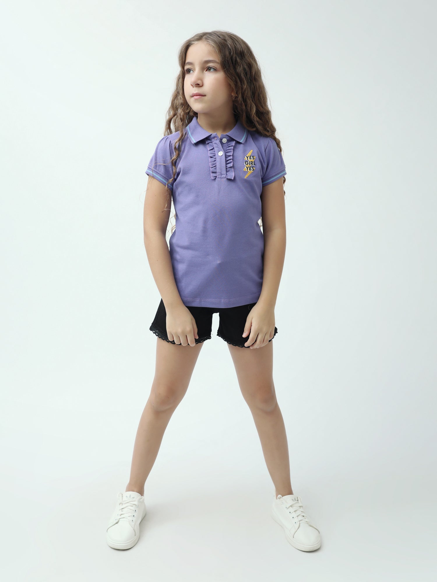 Ce polo ado fille est la pièce parfaite pour un style moderne et soigné au quotidien. Son col polo classique avec patte boutonnée est sublimé par un joli détail volant vertical qui apporte une touche féminine. Sur la poitrine, le patch brodé “YES GIRL YES” donne une note fun et affirmée, idéale pour les ados.