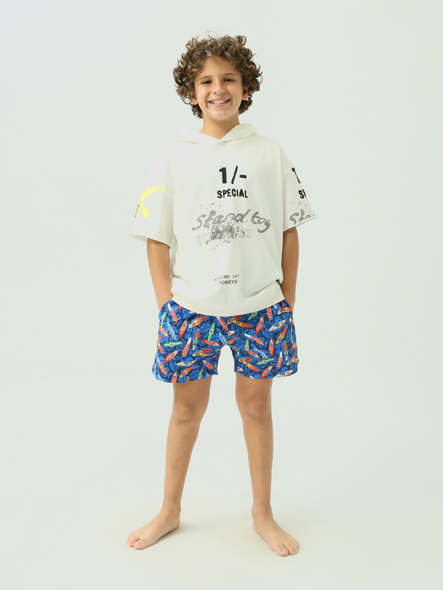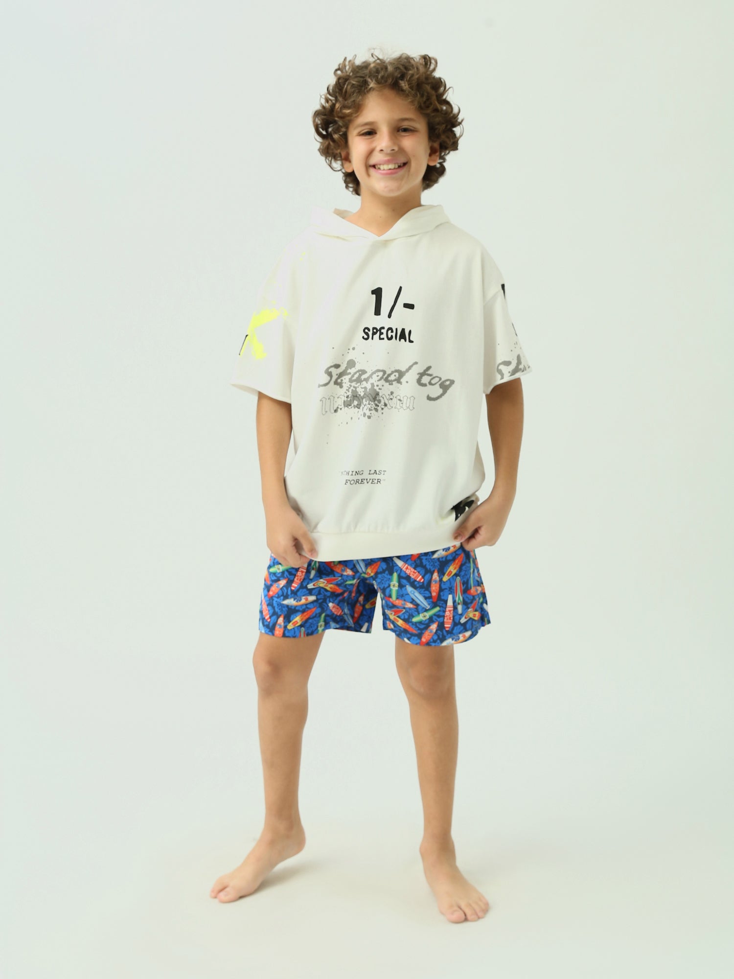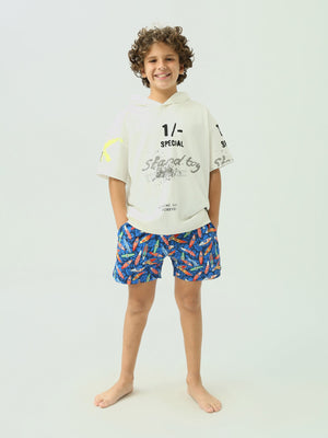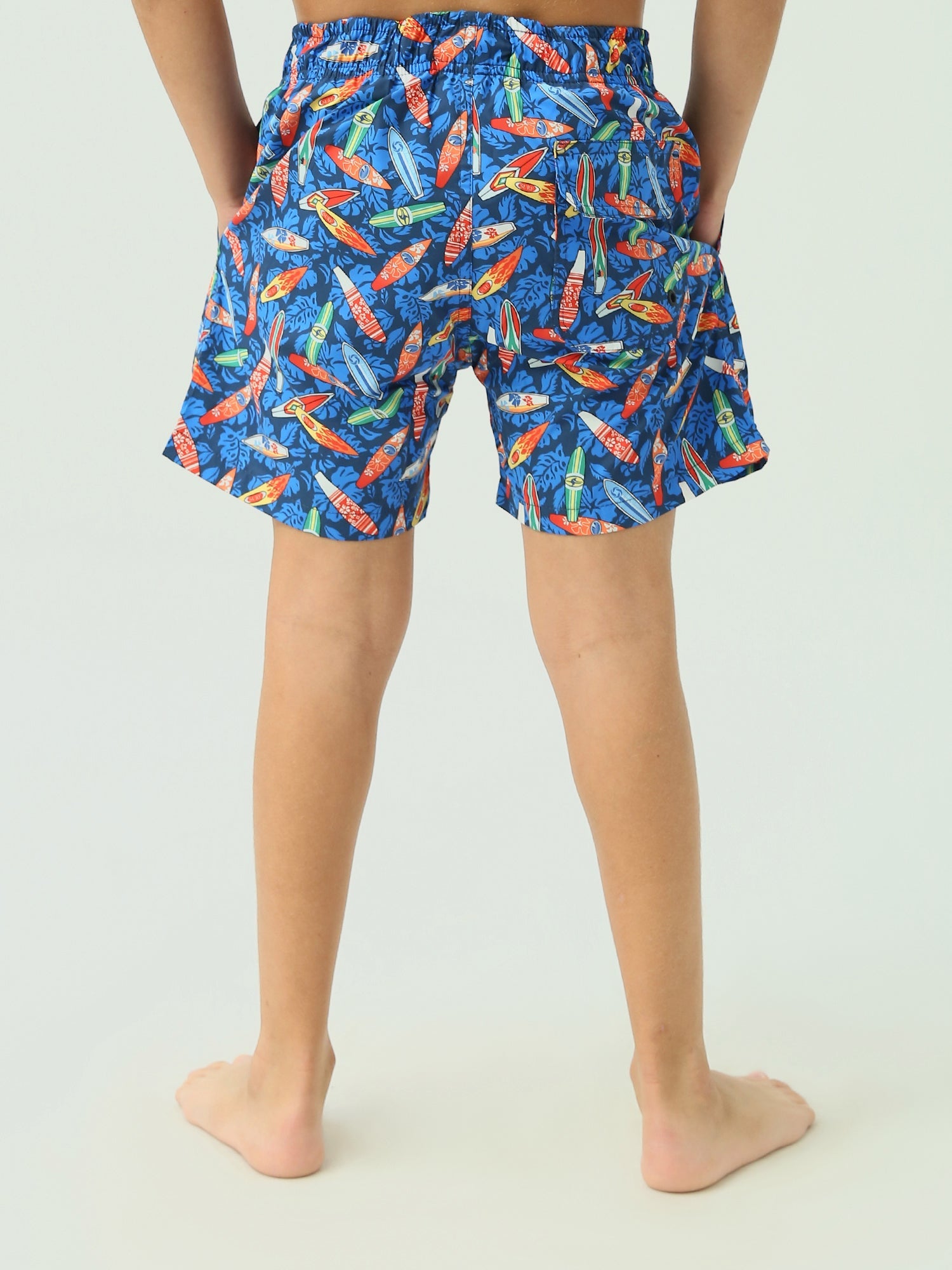 Short de bain pour enfants au design coloré et dynamique, avec des illustrations de planches de surf qui ajoutent une touche de fun et de fraîcheur au look de votre enfant. Ce short est doté d'un cordon de taille ajustable pour un confort optimal et une grande liberté de mouvement. Fabriqué dans un tissu léger et à séchage rapide, il est parfait pour la piscine ou la plage lors des journées d'été. Il comprend des poches latérales pour ranger les petits objets.