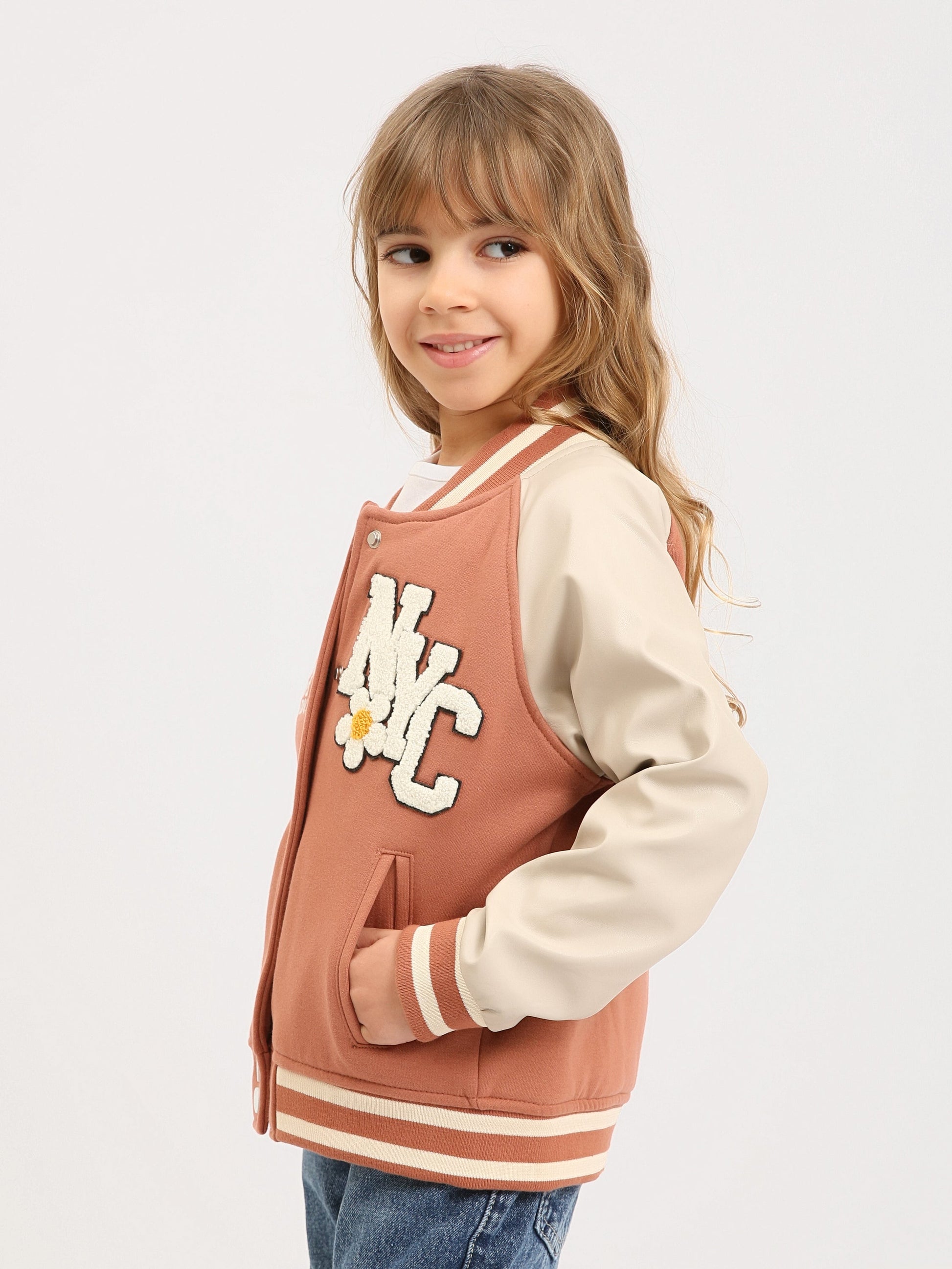 Veste teddy fille style varsity, color block, patch NYC en relief avec détail fleur, fermeture à boutons-pression - SWS25WBCS71263MG1