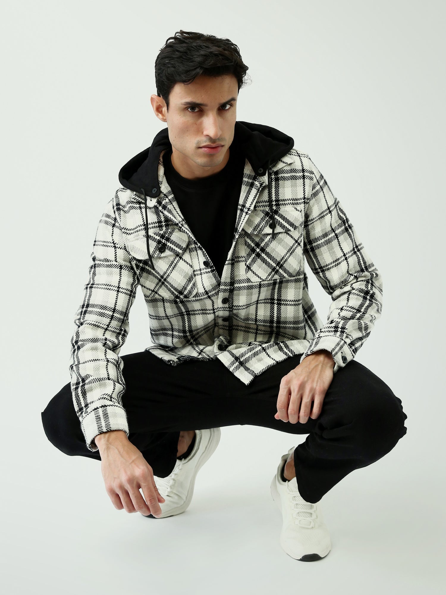 Veste Chemise à Carreaux Homme avec Capuche - Confort et Style Urbain - OSH25WCCD19116TM1
