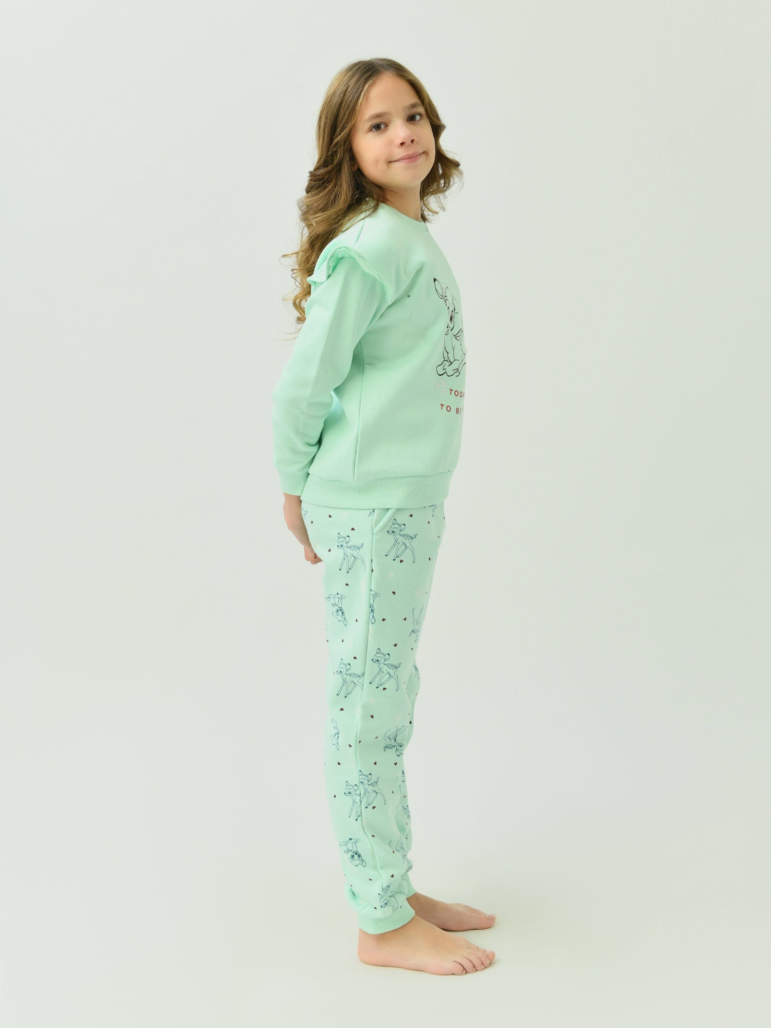 Un pyjama 2 pièces adorable et confortable, parfait pour des nuits douces et des moments cocooning à la maison. Le haut à manches longues est décoré d’un joli motif Bambi avec message “Today is going to be a great day”, tandis que le pantalon assorti est imprimé pour un look harmonieux. Les petits volants aux épaules ajoutent une touche féminine et élégante.