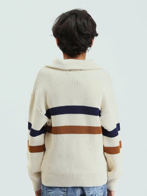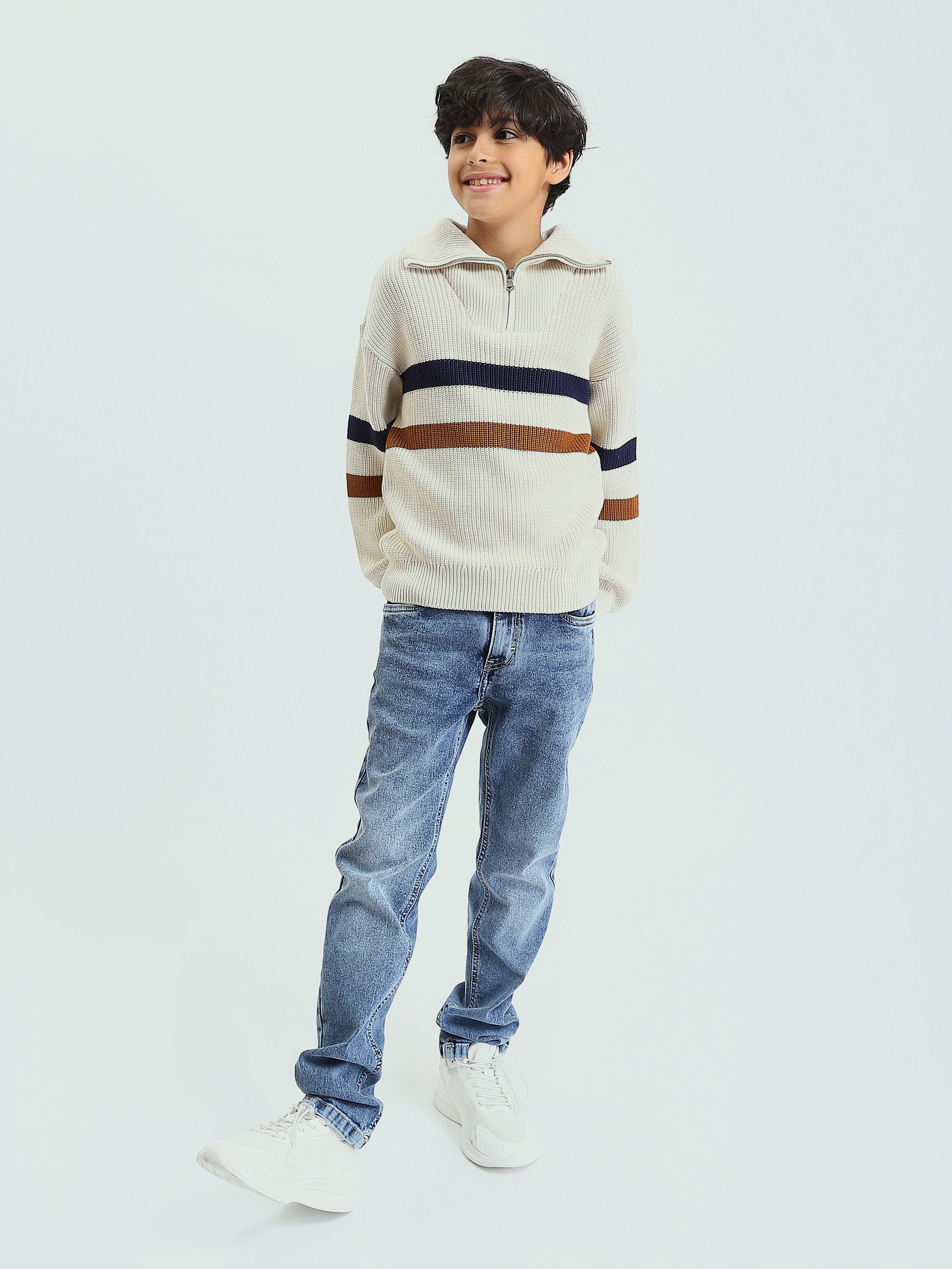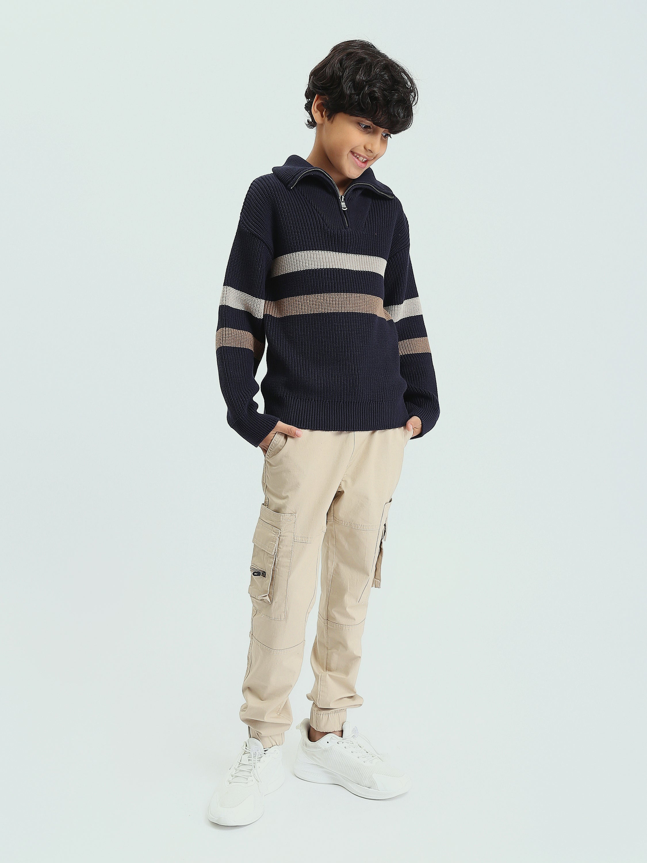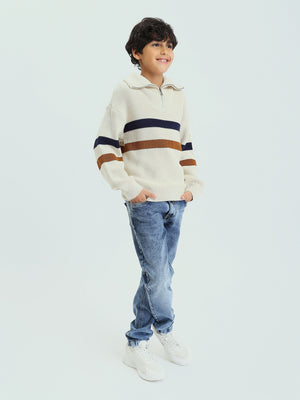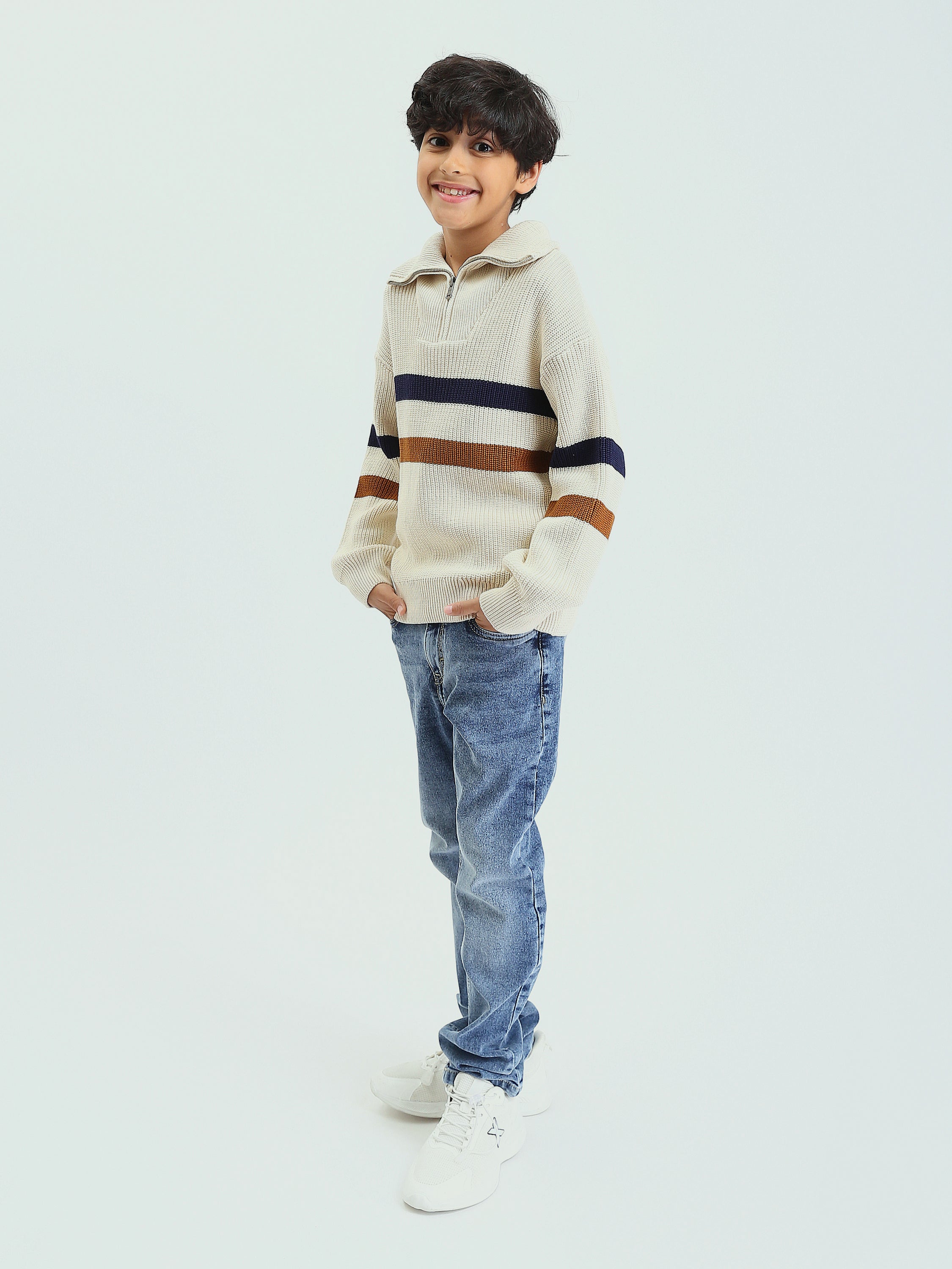Sweatshirt pour enfants au design moderne et élégant, avec une fermeture éclair à l'avant et un col haut, orné de lignes colorées qui lui ajoutent un look unique. Il se distingue par son ambiance sportive et son tissu coton doux, offrant un confort optimal tout au long de la journée. Parfait pour les occasions décontractées ou les looks quotidiens, il se marie facilement avec un jean ou un pantalon en coton pour un style à la fois tendance et confortable.