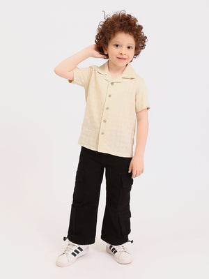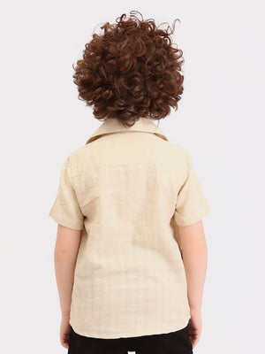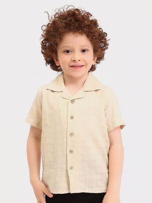 Chemise garçon manches courtes col cubain – effet lin beige - SSH25SELR76463MB1