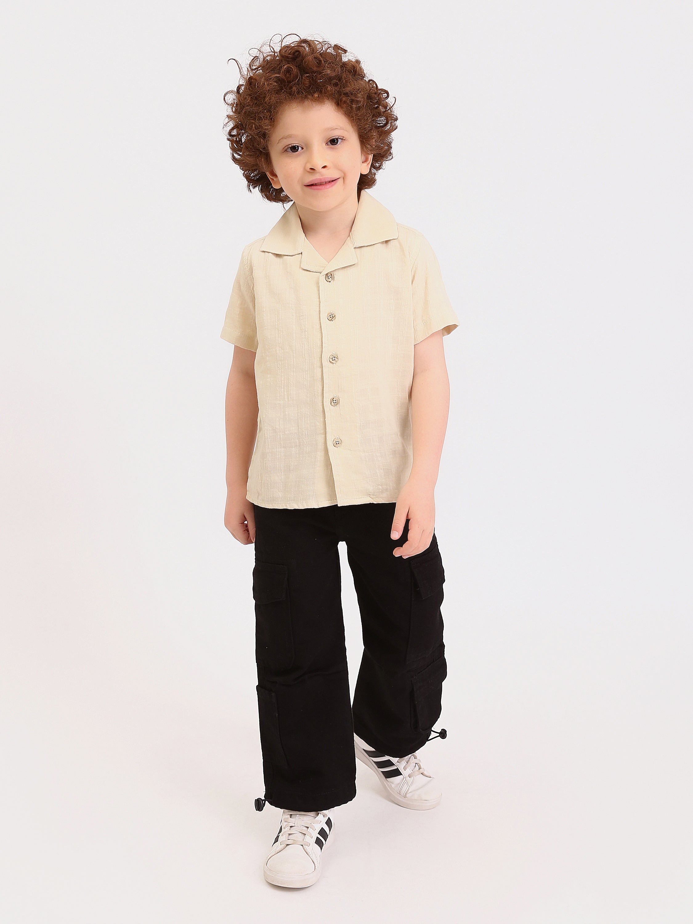 Cette chemise garçon manches courtes couleur beige est la pièce idéale pour un style élégant et confortable pendant la saison chaude. Son tissu léger effet lin apporte une sensation agréable sur la peau et laisse respirer, ce qui la rend parfaite pour l’été, les vacances et les journées ensoleillées.