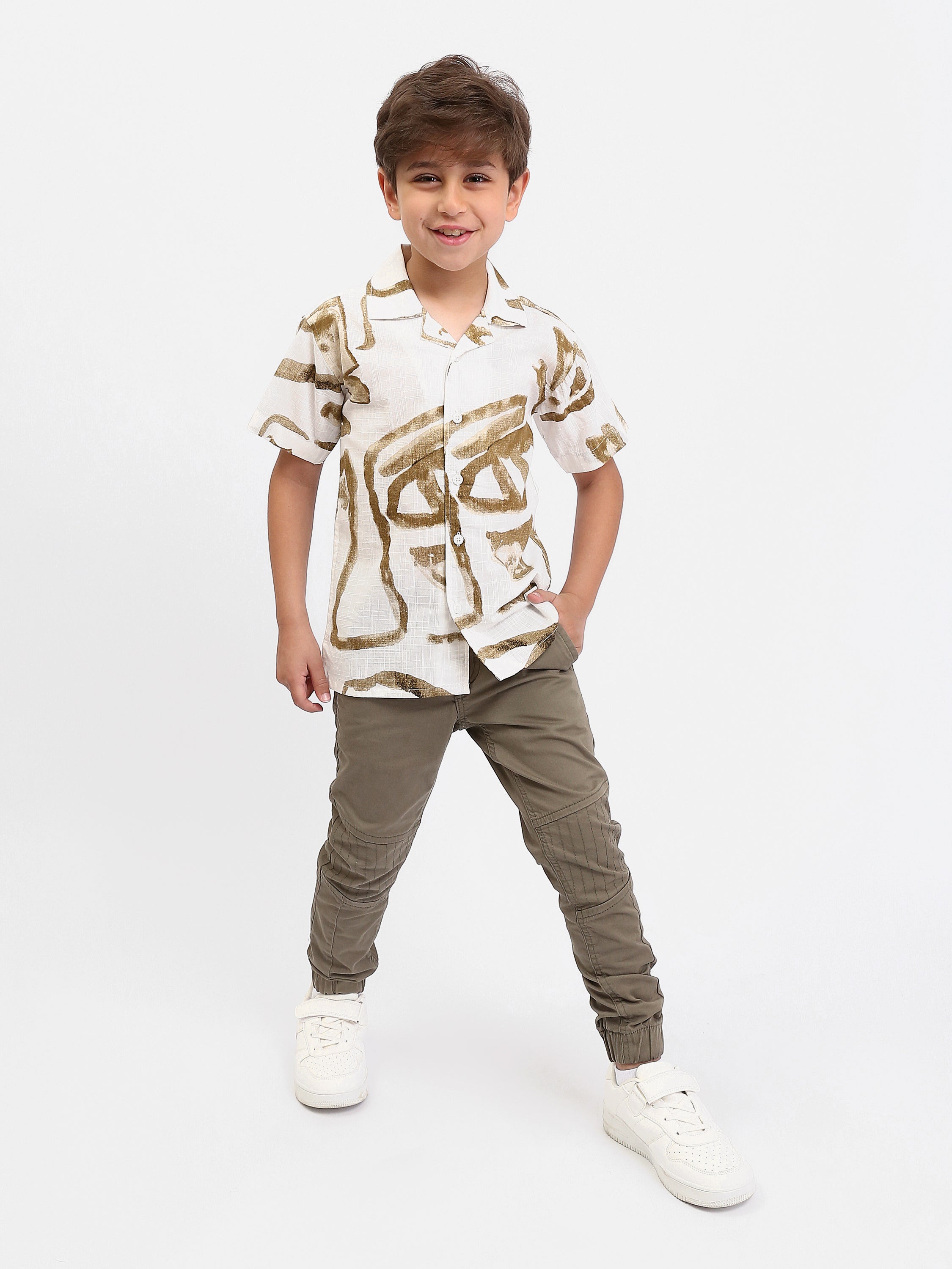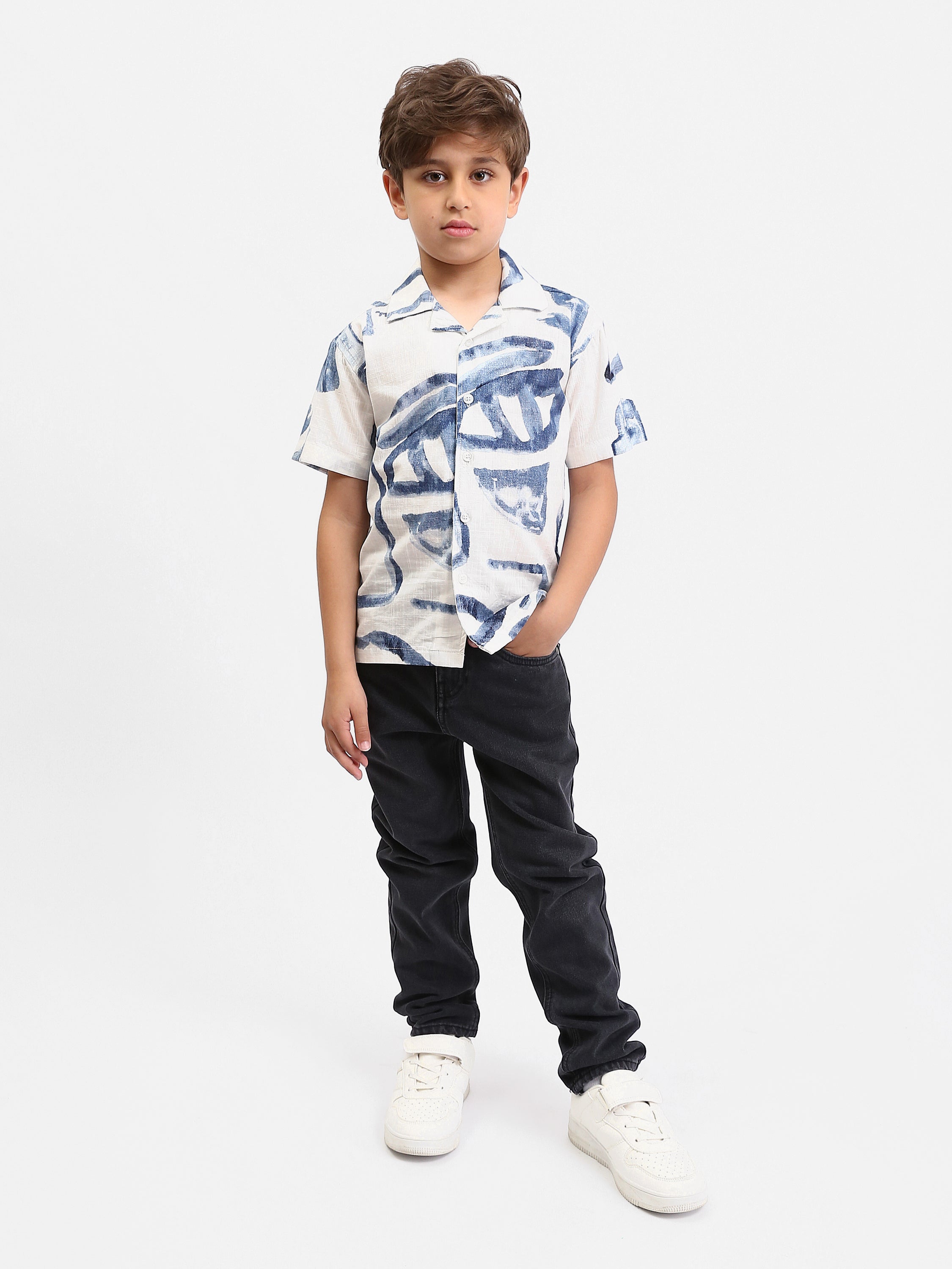 Apportez une touche moderne et estivale au dressing de votre garçon avec cette chemise à manches courtes au motif abstrait. Son style casual-chic se porte facilement au quotidien, à l’école, en sortie ou pendant les vacances.