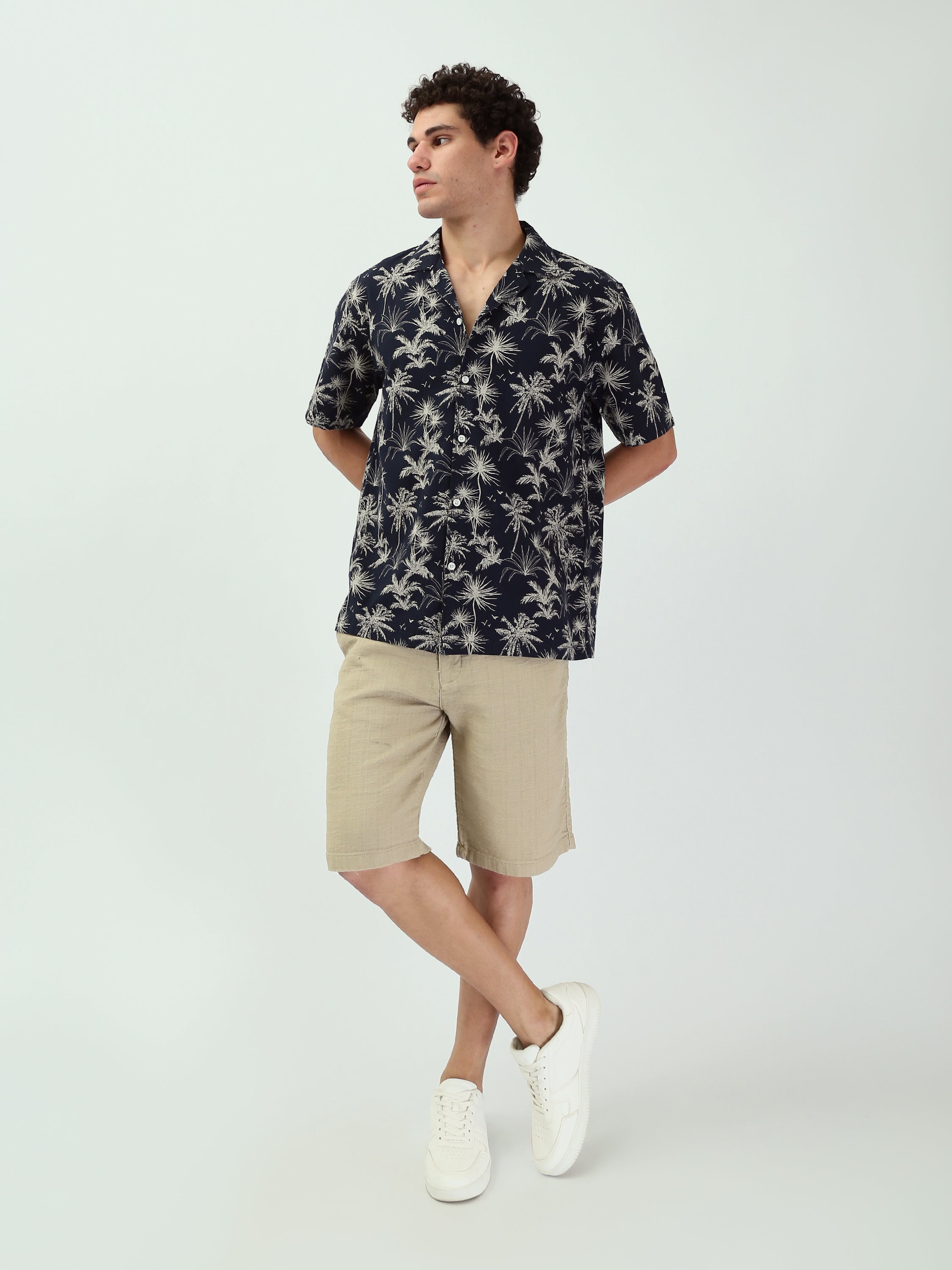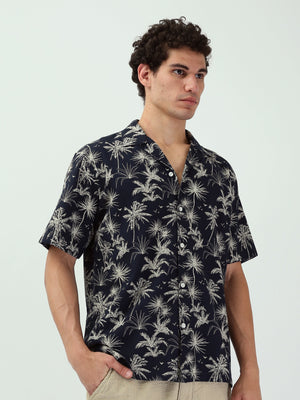 Chemise pour homme moderne avec un design de palmiers sur fond bleu foncé, apportant une touche de fraîcheur et de style à votre look estival. Cette chemise à manches courtes et à boutons sur le devant est idéale pour les occasions décontractées ou les activités quotidiennes. Fabriquée dans un tissu léger et confortable, elle est parfaite pour les journées chaudes. Avec son design moderne, cette chemise ajoute une touche unique à votre style.