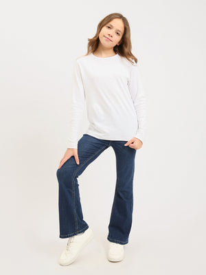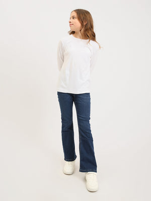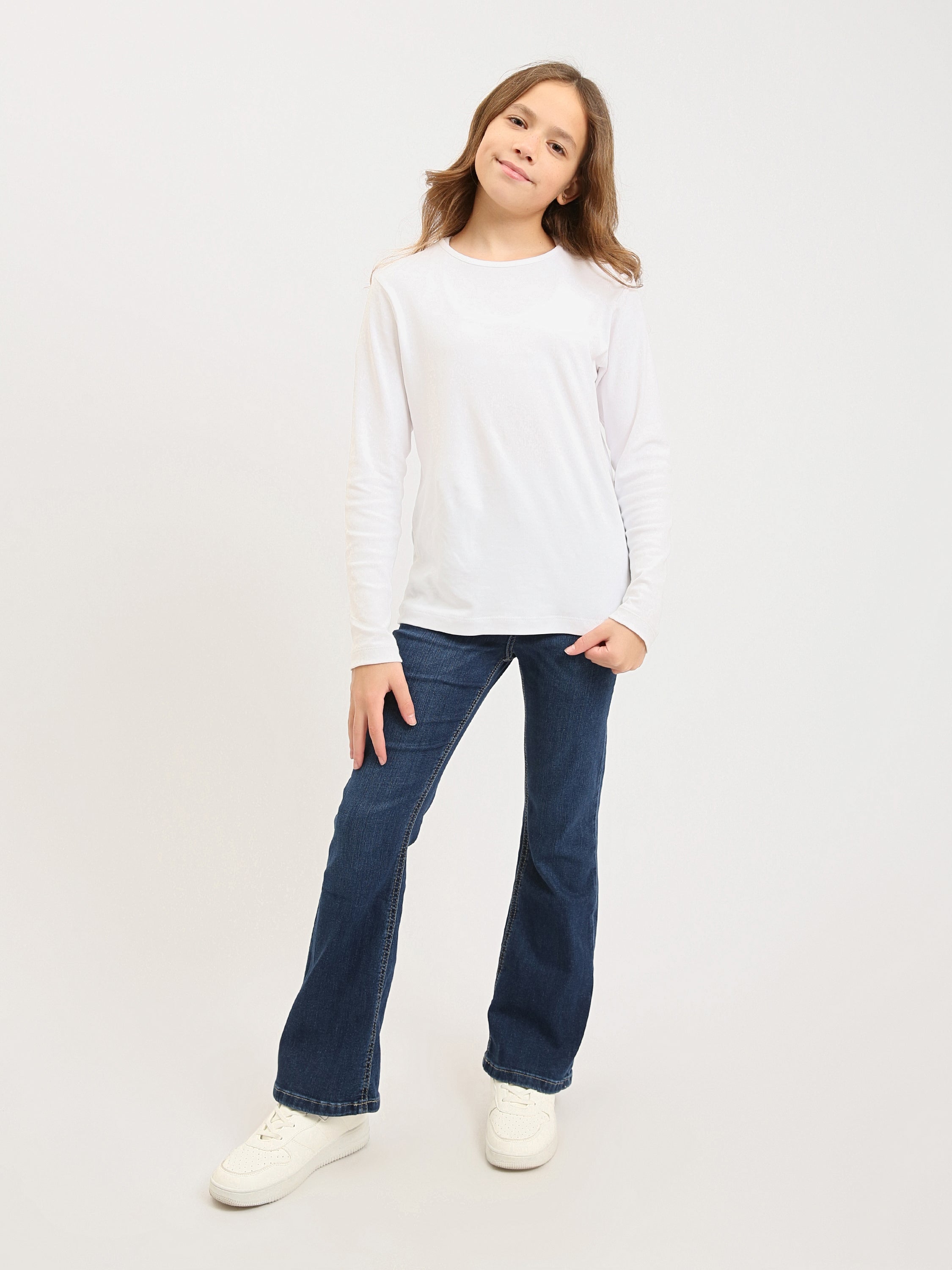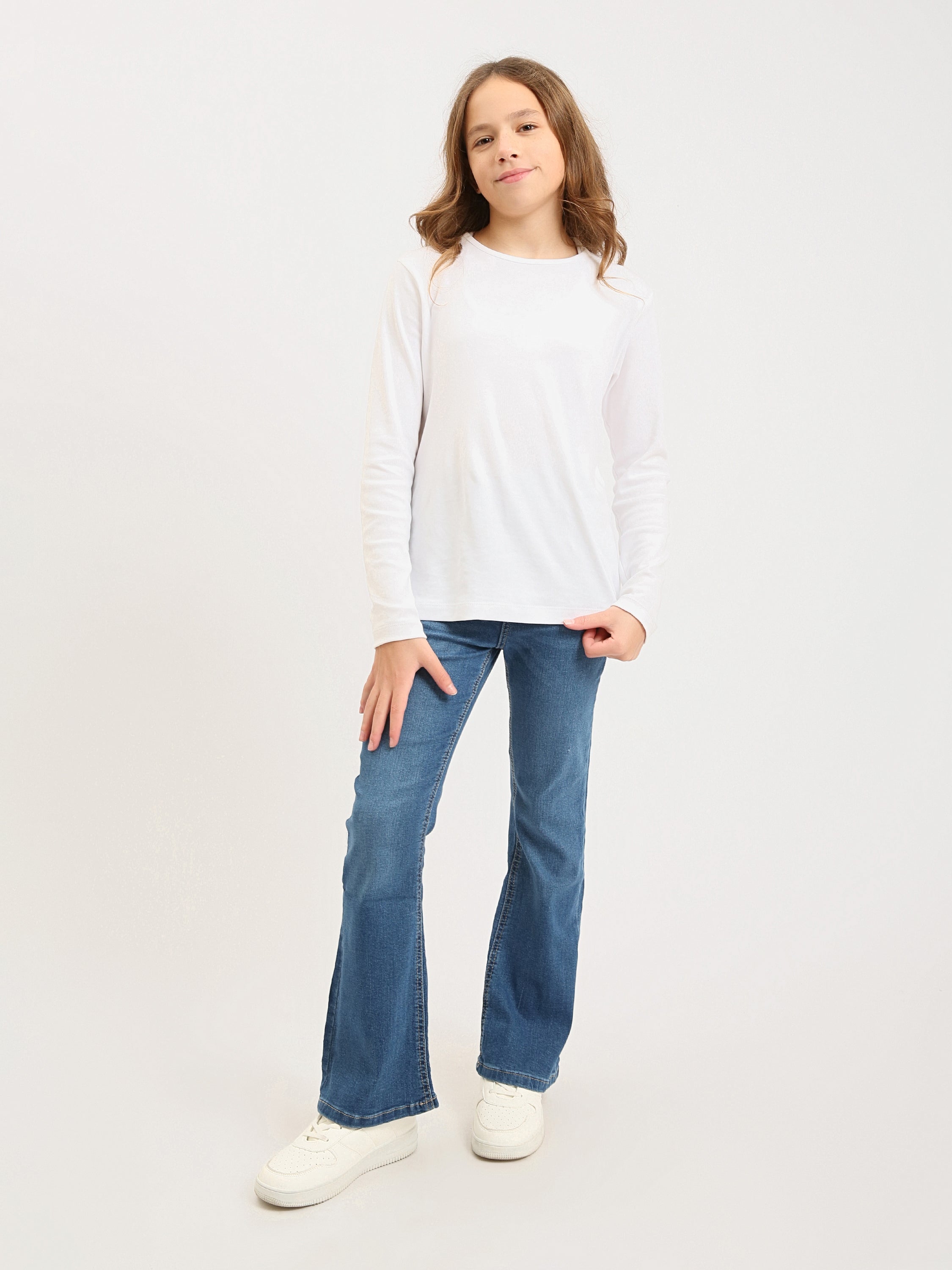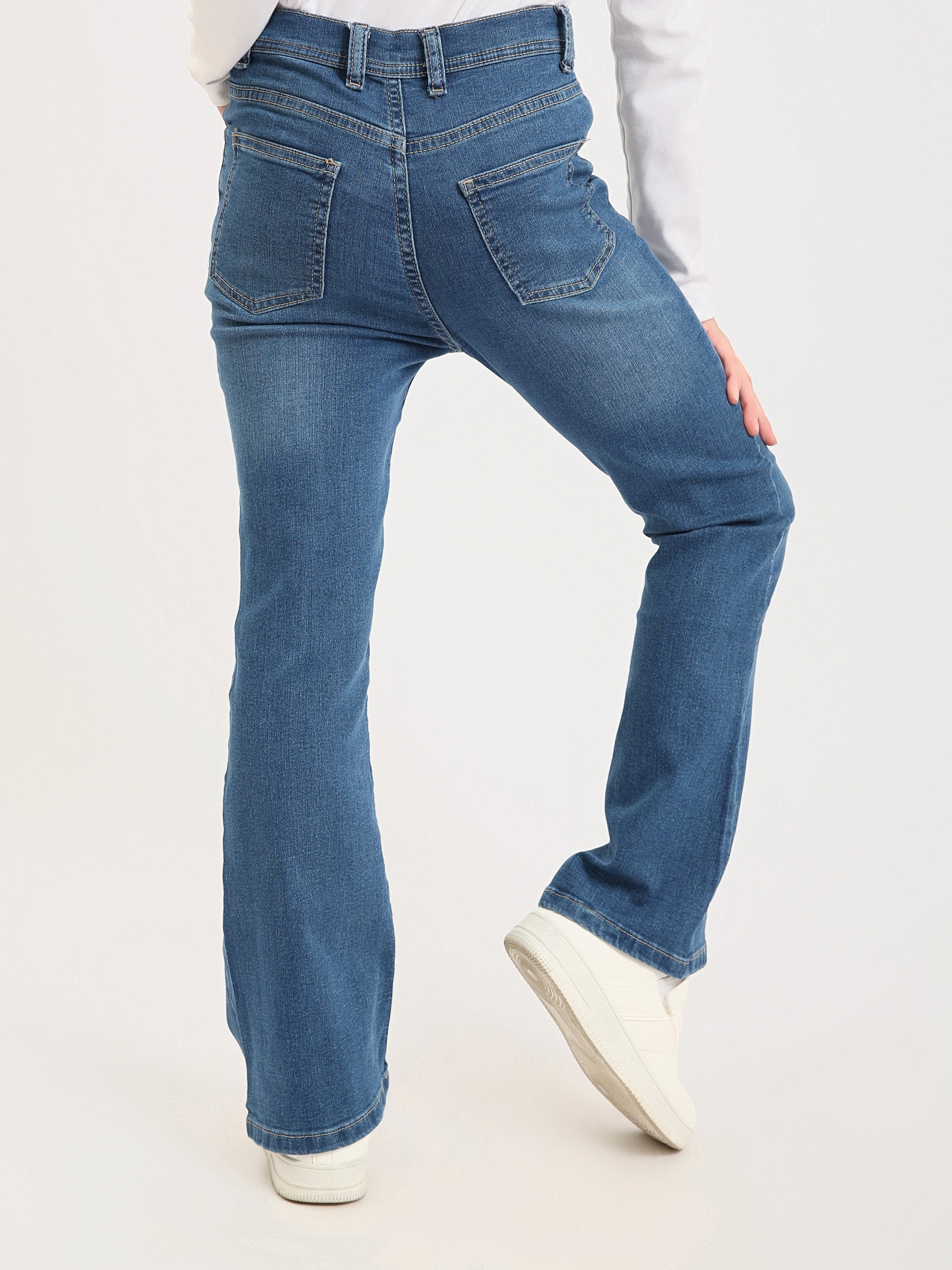 Ce jean ado fille en denim bleu est un essentiel parfait pour créer des looks tendance et confortables au quotidien. Sa coupe flare, légèrement évasée au bas des jambes, apporte une touche mode inspirée du style rétro tout en restant facile à porter à l’école, en sortie ou en week-end.