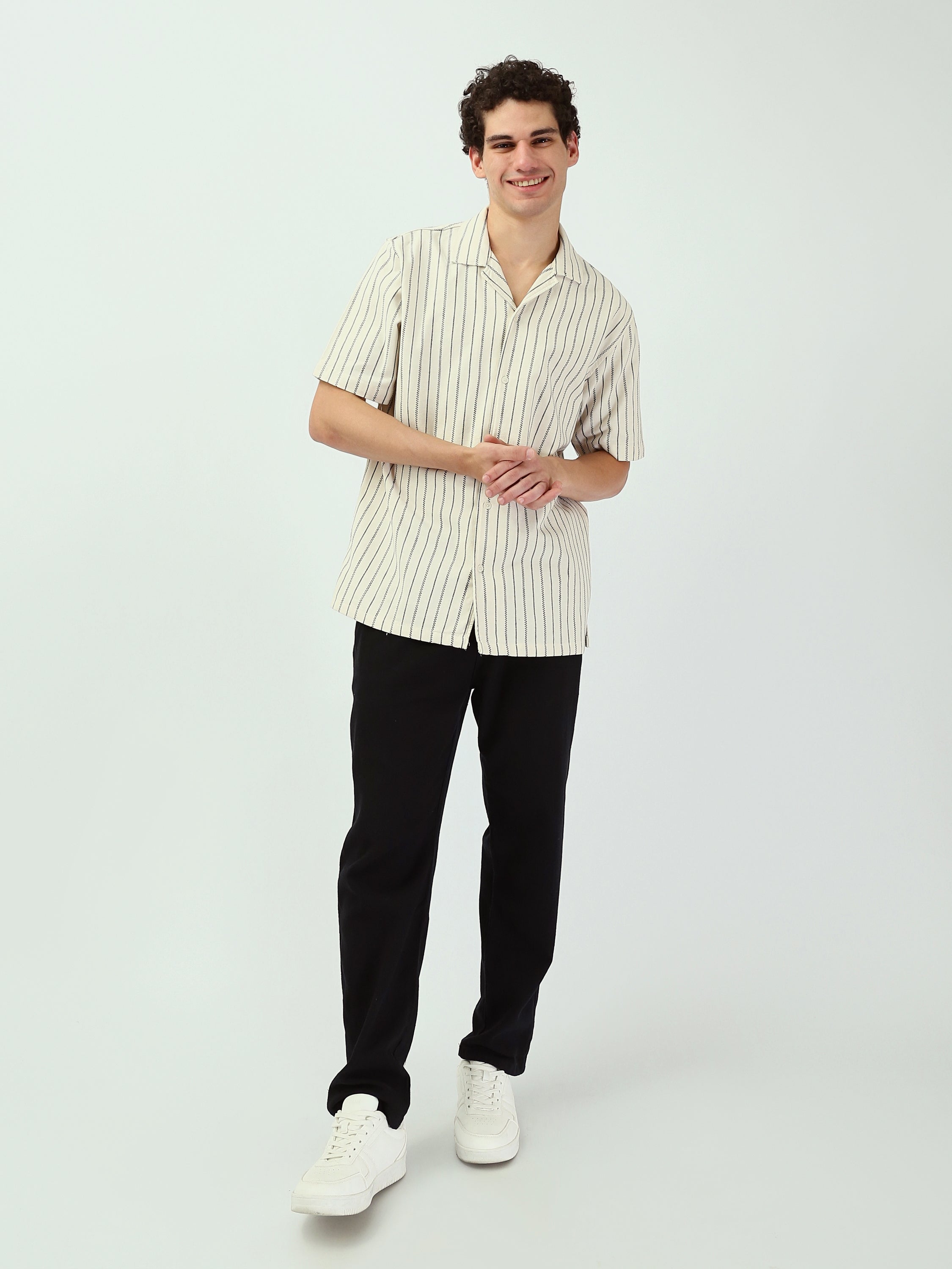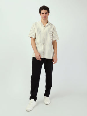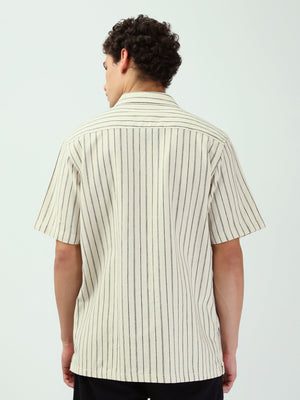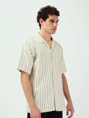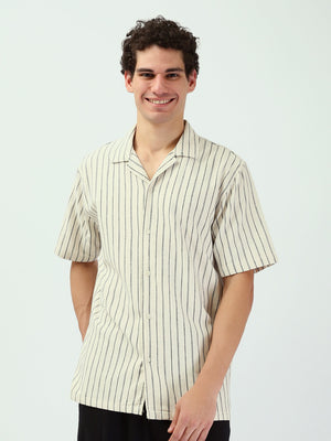 Chemise pour homme moderne avec un design rayé en blanc et noir. Cette chemise à manches courtes et à ouverture frontale avec boutons est idéale pour les occasions décontractées ou les looks quotidiens. Fabriquée dans un tissu léger et confortable, elle est parfaite pour les journées estivales et assure un confort tout au long de la journée. Elle se coordonne facilement avec un short ou un pantalon pour un look moderne et élégant.