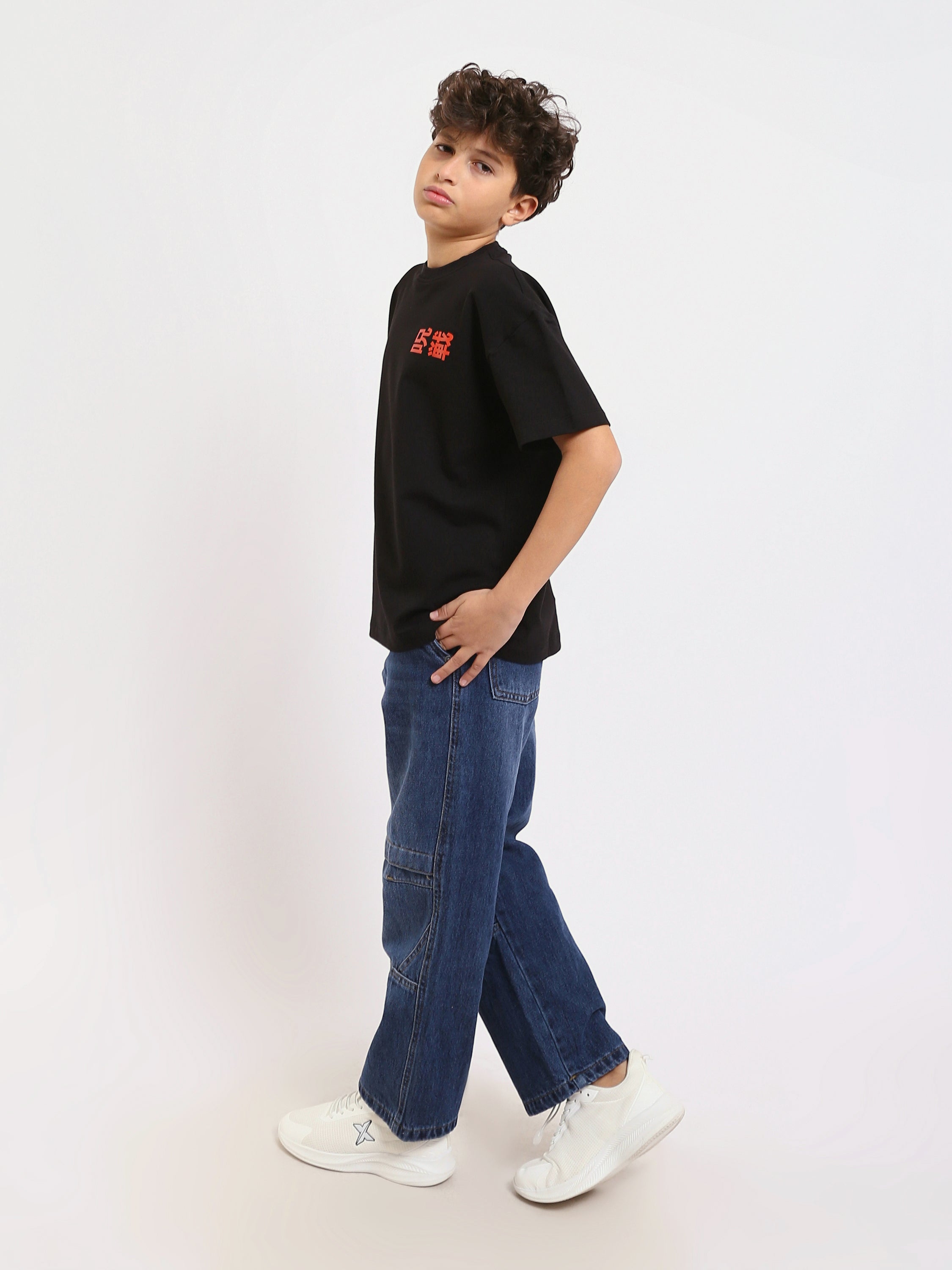 T-shirt garçon décontracté avec un design moderne et élégant, fabriqué dans un tissu en coton doux pour garantir un confort toute la journée. Il se distingue par une inscription sur le devant et un logo sur le côté, ajoutant une touche unique et tendance. Parfait pour des occasions décontractées ou pour un usage quotidien, il peut être facilement assorti avec un jean ou un pantalon de sport pour un look à la fois confortable et élégant.
