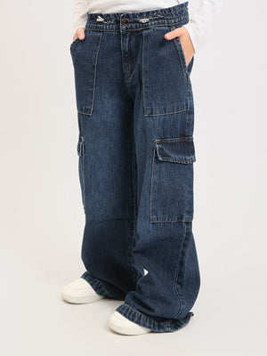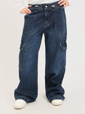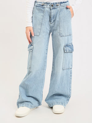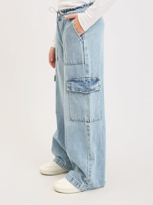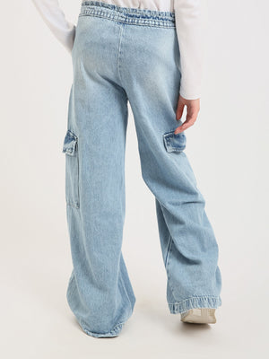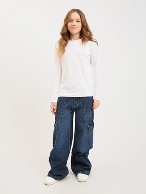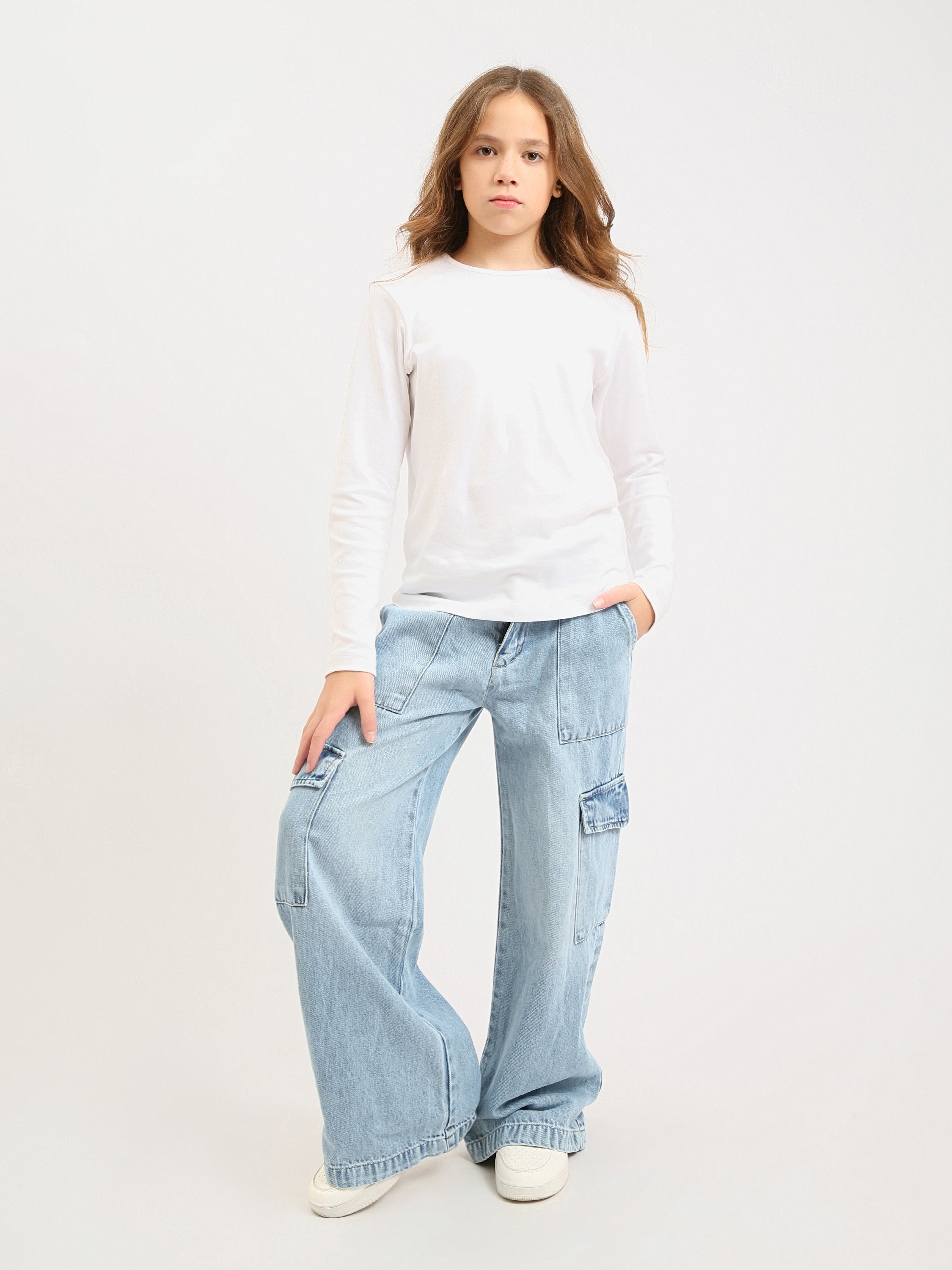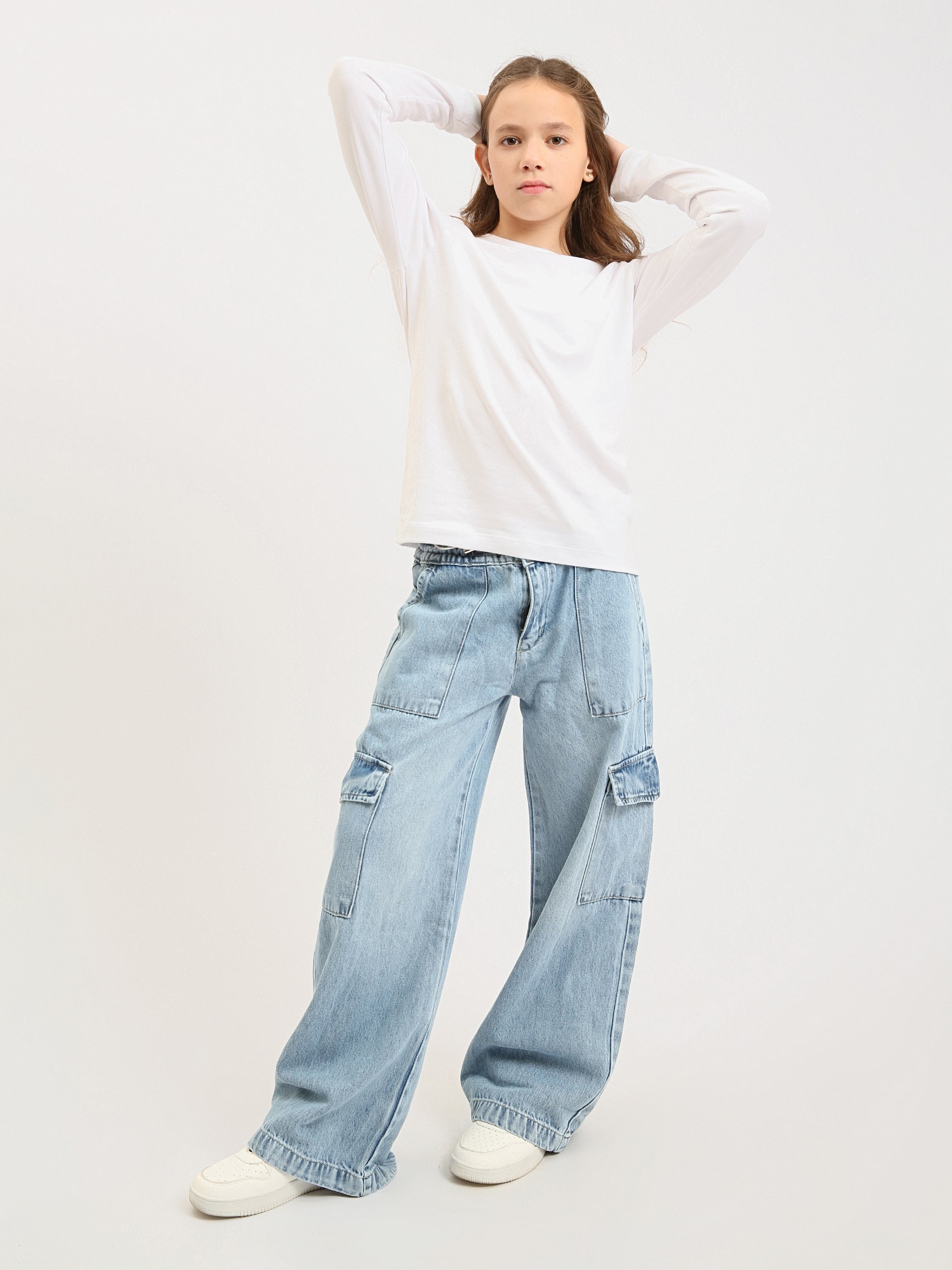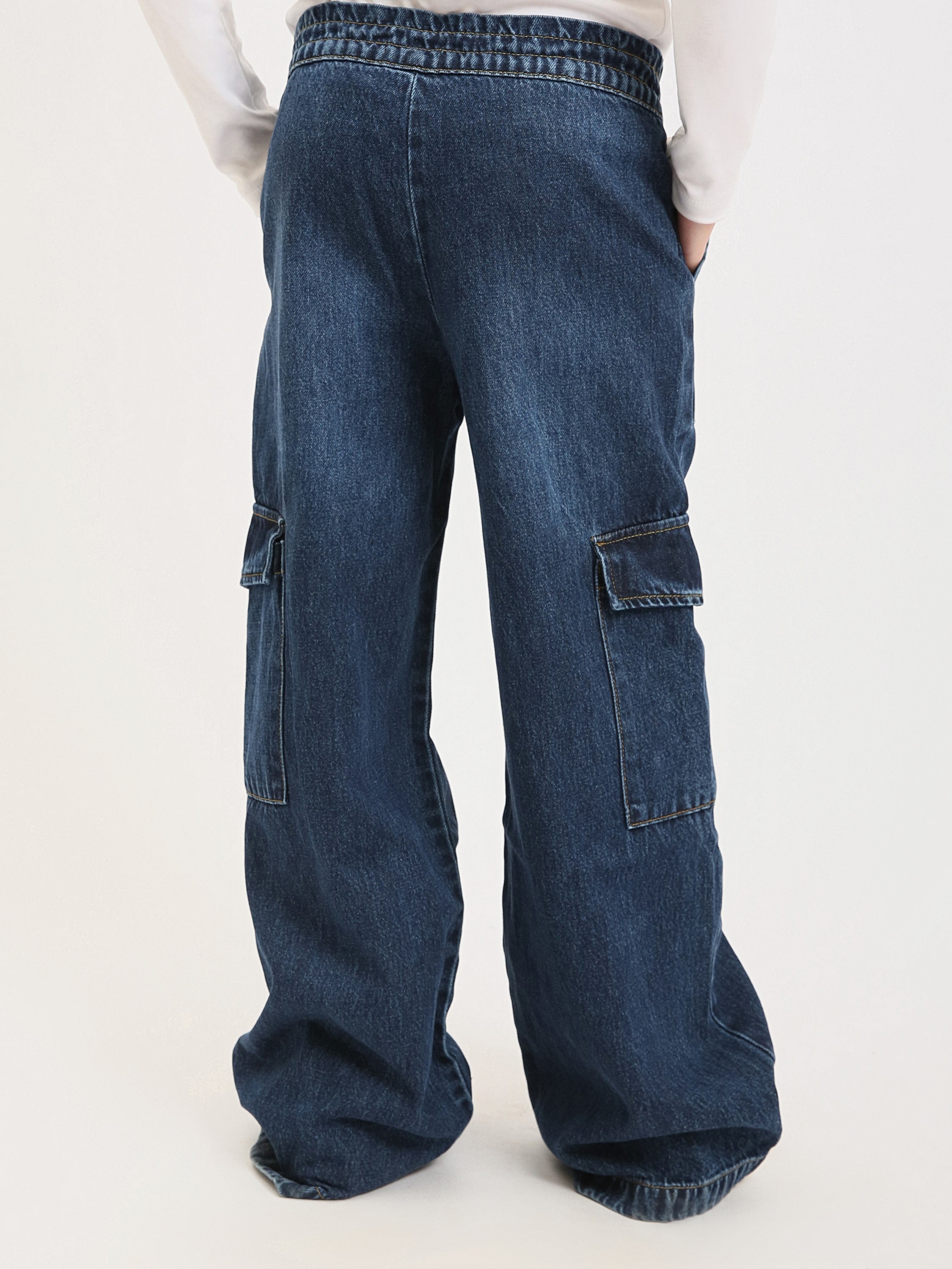 Pantalon cargo ado fille en denim coupe wide leg avec poches – Style streetwear - JOG25GDBP71447MR1