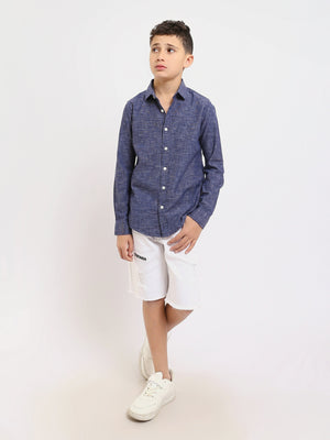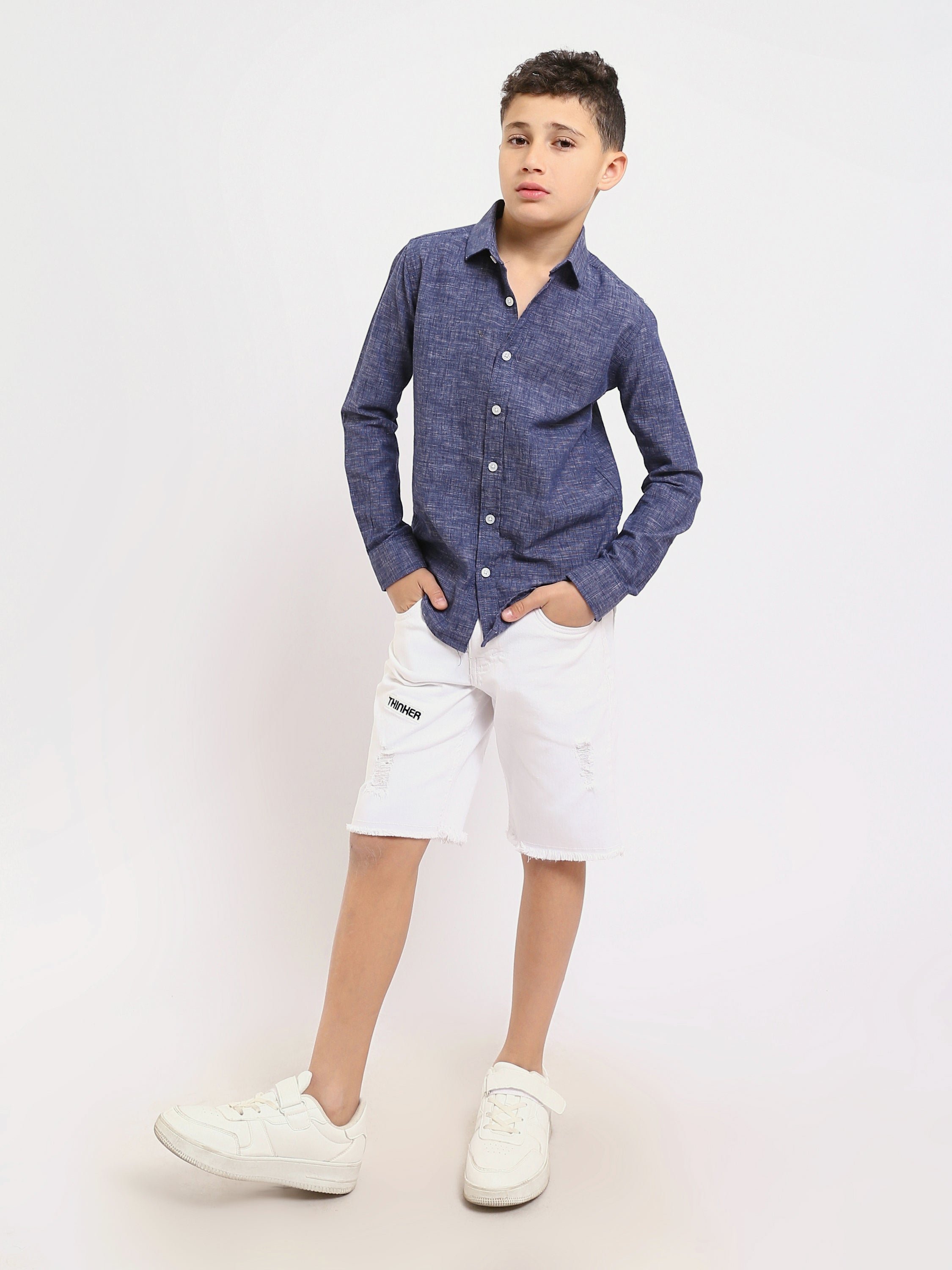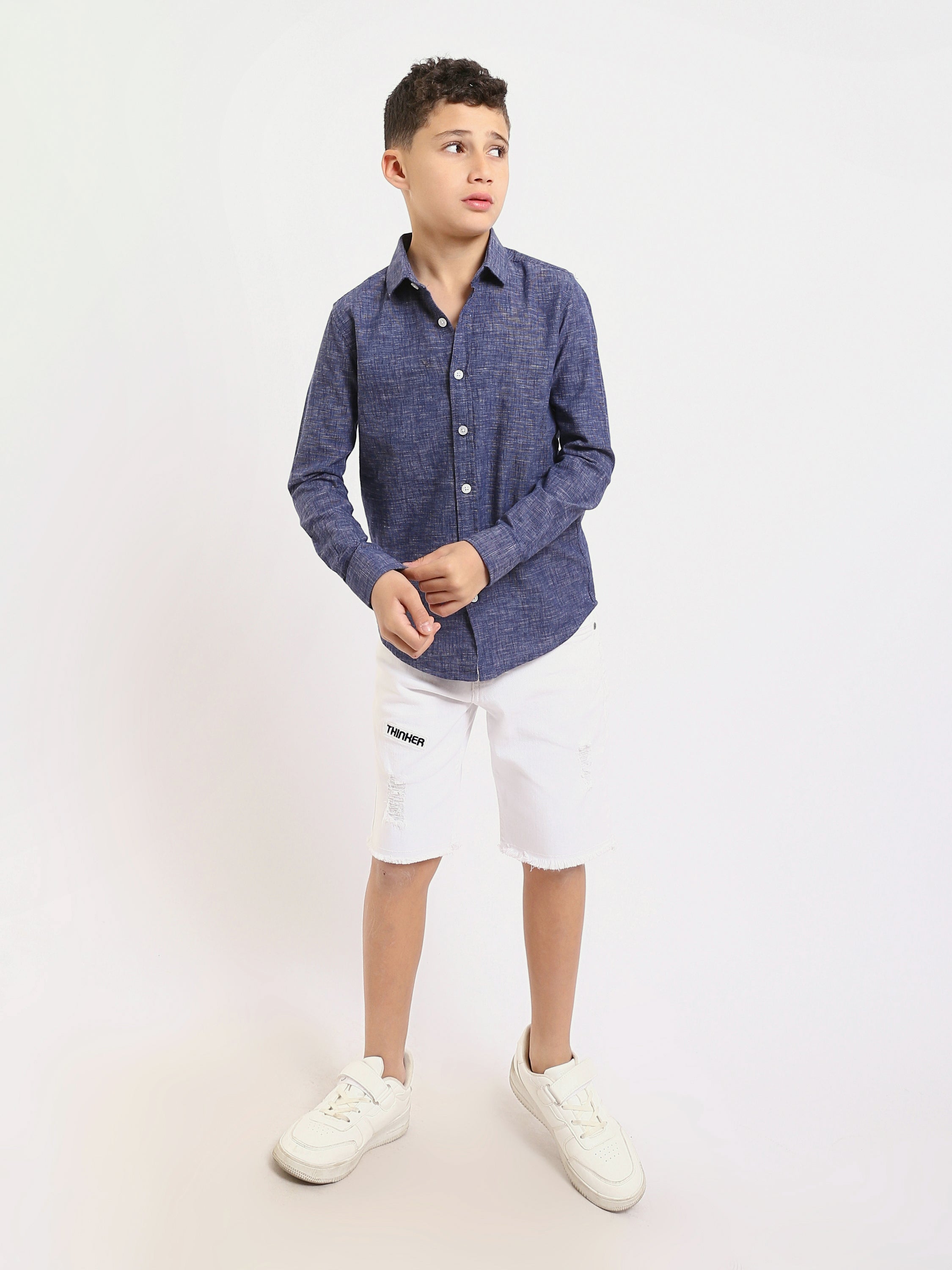 Chemise pour enfants de couleur bleu marine, au design moderne et élégant avec des boutons sur le devant. Fabriquée dans un tissu léger et confortable, cette chemise est idéale pour les looks quotidiens ou les occasions décontractées. Avec son design simple et confortable, elle se coordonne facilement avec un pantalon en jean ou un short pour un look moderne et élégant.