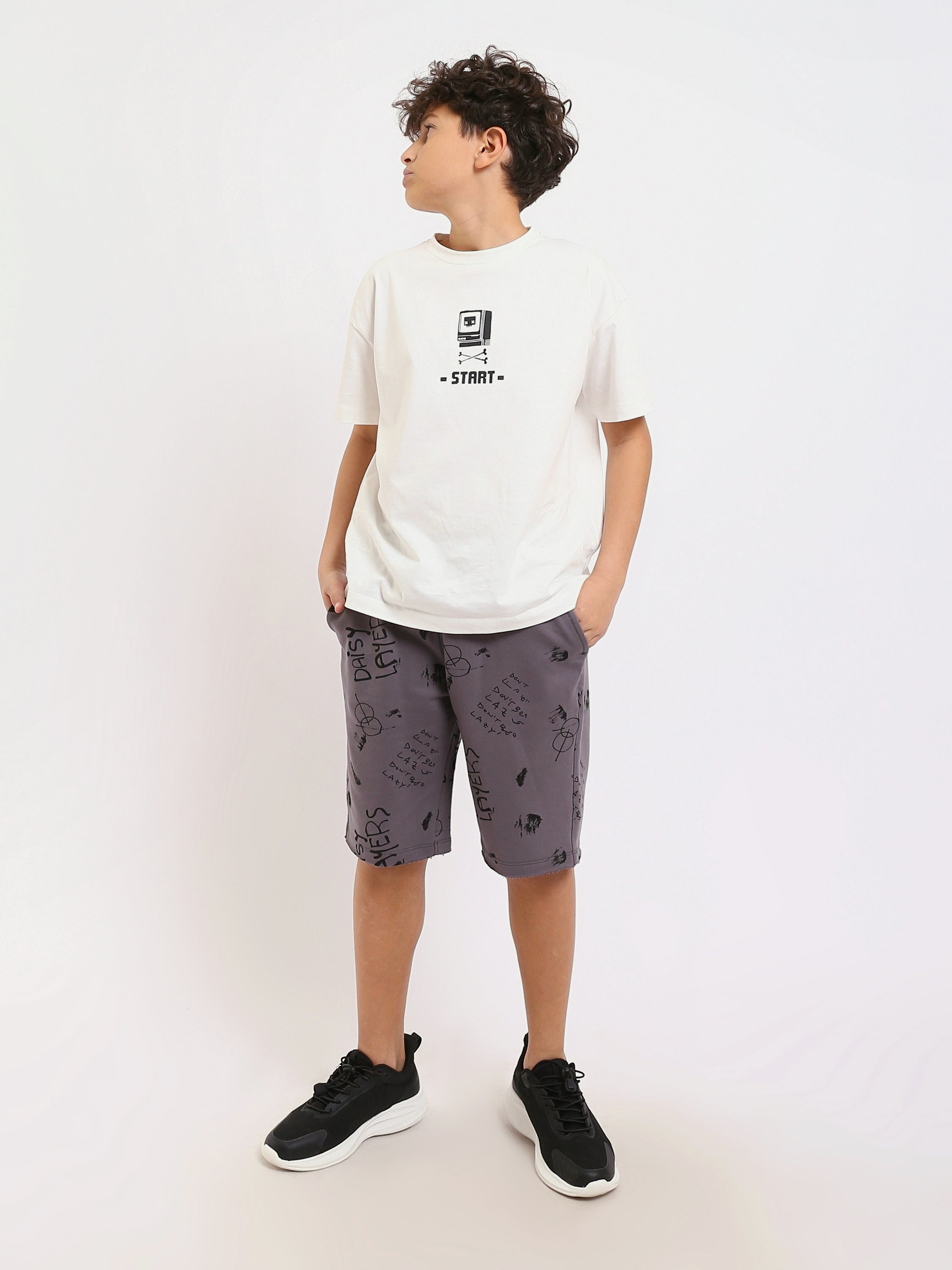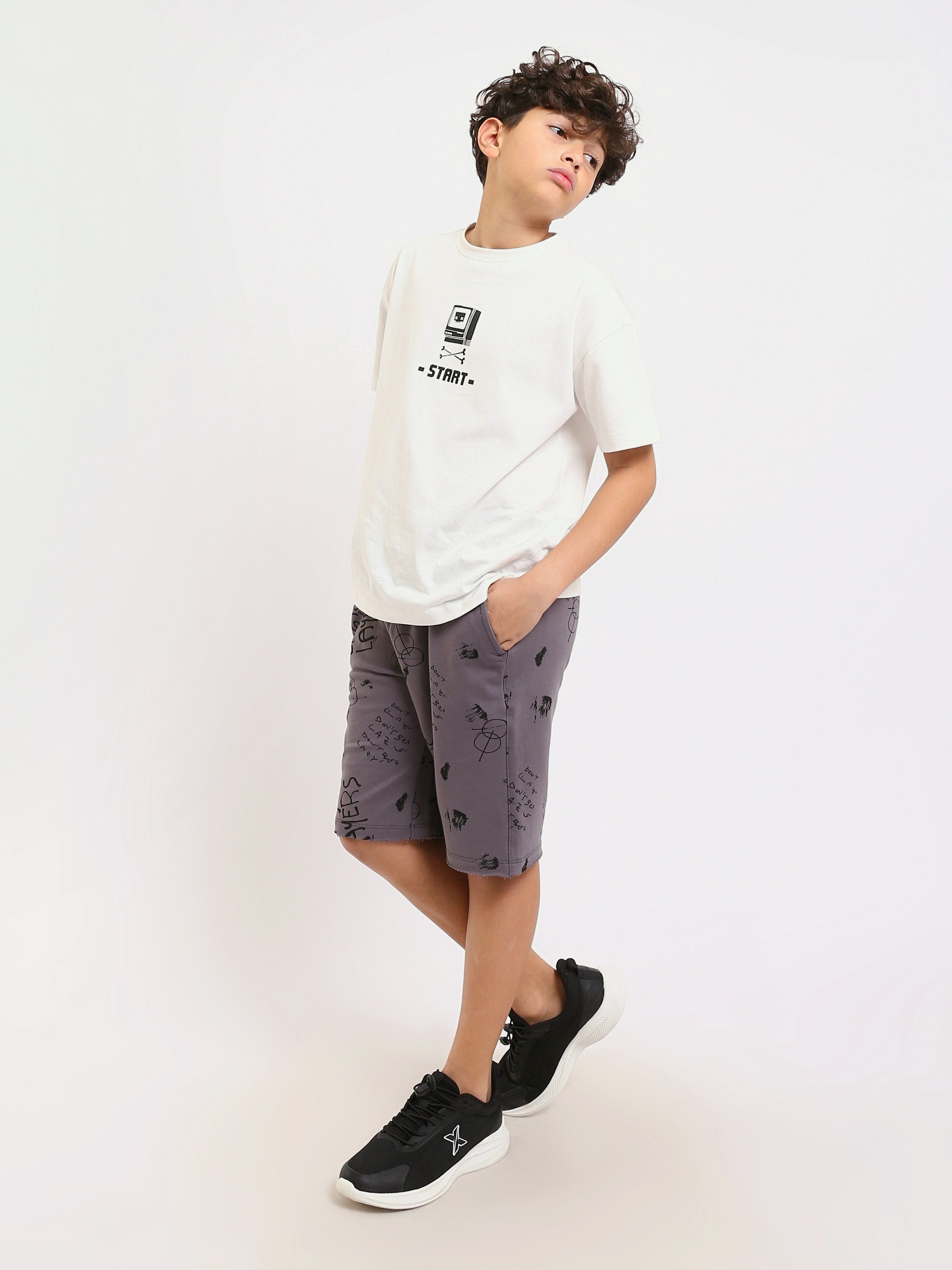 Short enfant garçon au style casual et pratique, idéal pour les activités quotidiennes, le jeu et les sorties. Il est doté d’une taille élastique avec cordon de serrage pour un meilleur confort et un maintien optimal, ainsi que d’un imprimé moderne apportant une touche jeune et dynamique appréciée par les enfants.