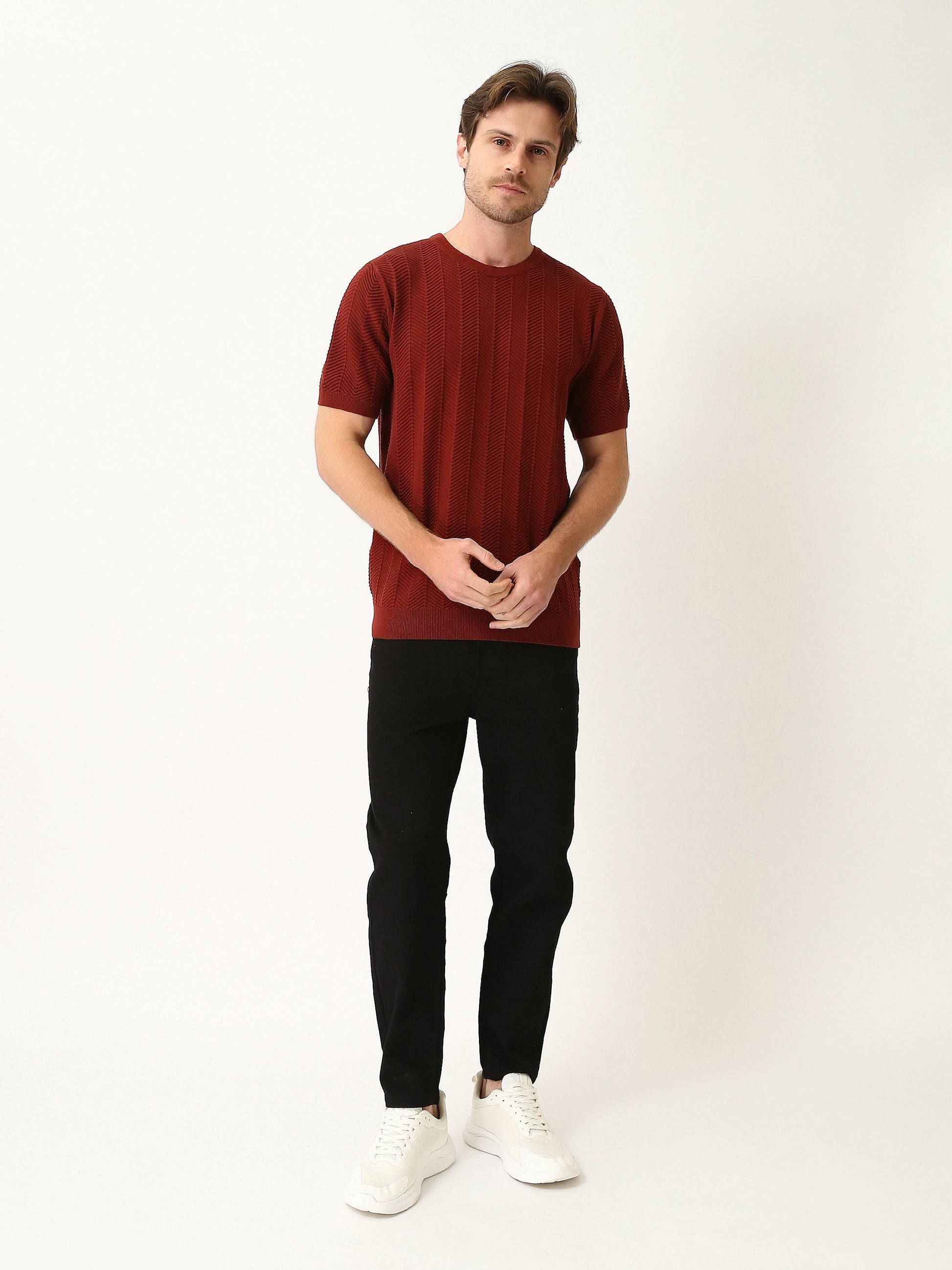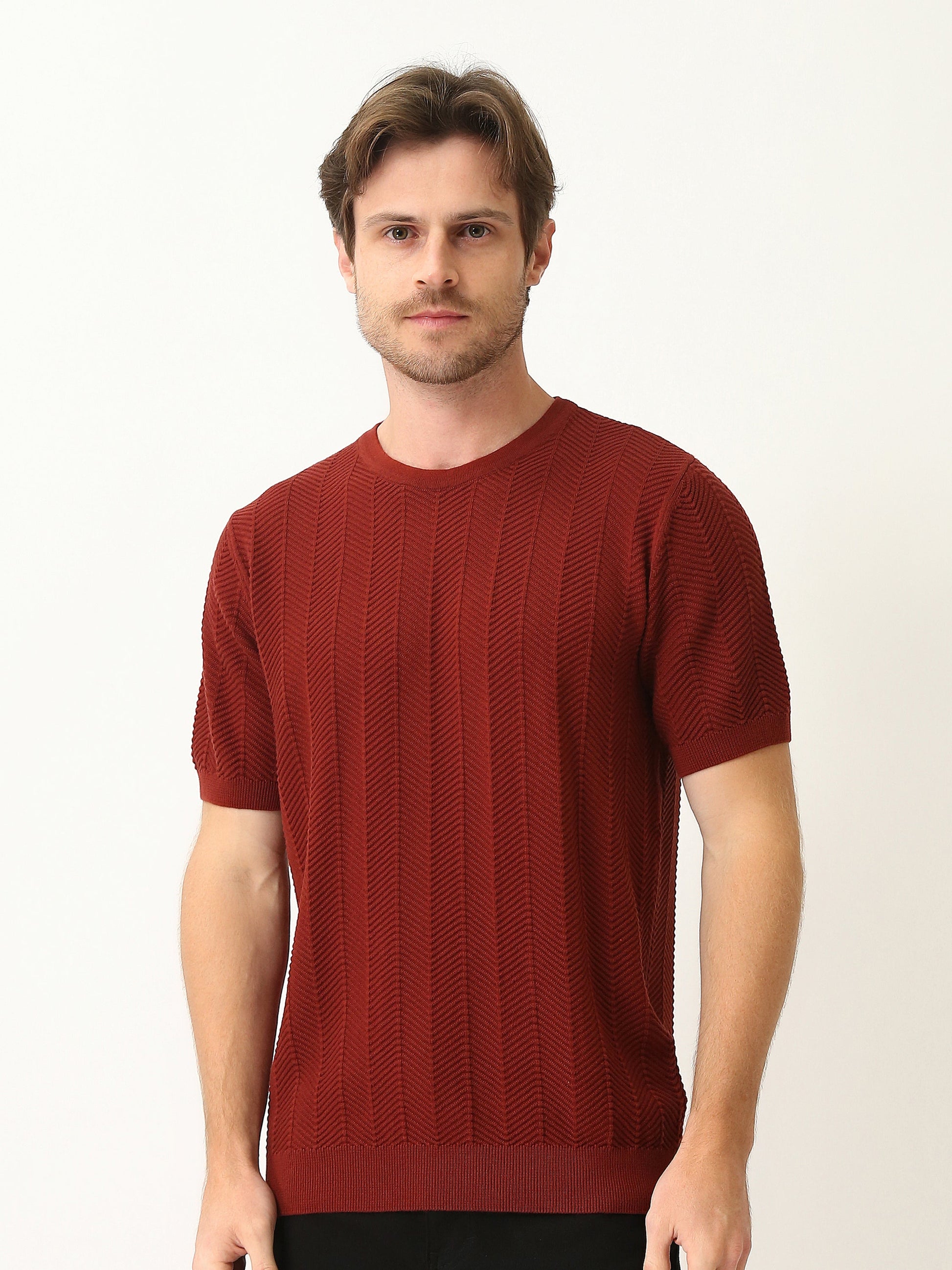 T-shirt homme en maille texturée à manches courtes – Élégance casual moderne - TSH25SKRS20369TM1