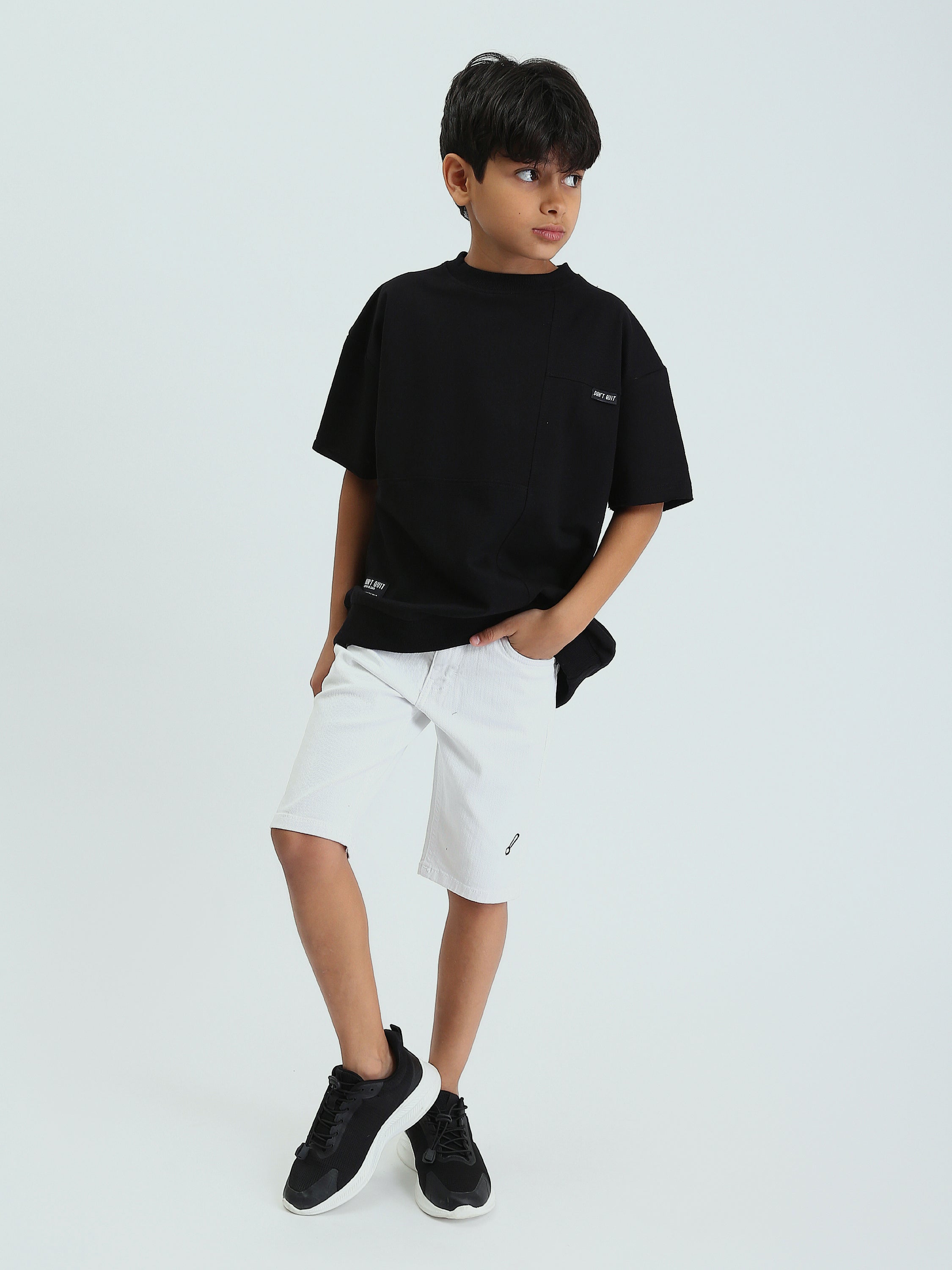 Ajoutez une touche d’élégance au look de votre enfant avec ce short moderne, conçu avec des détails innovants et un imprimé distinctif sur les poches. Il se distingue par une coupe confortable avec une taille élastique et des boutons réglables, assurant un ajustement parfait et un confort optimal tout au long de la journée. Idéal pour les activités quotidiennes et les occasions décontractées, il allie style et aisance pour offrir à votre enfant une allure moderne et confortable.