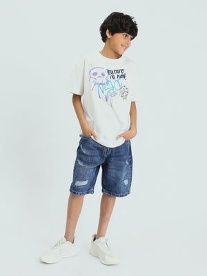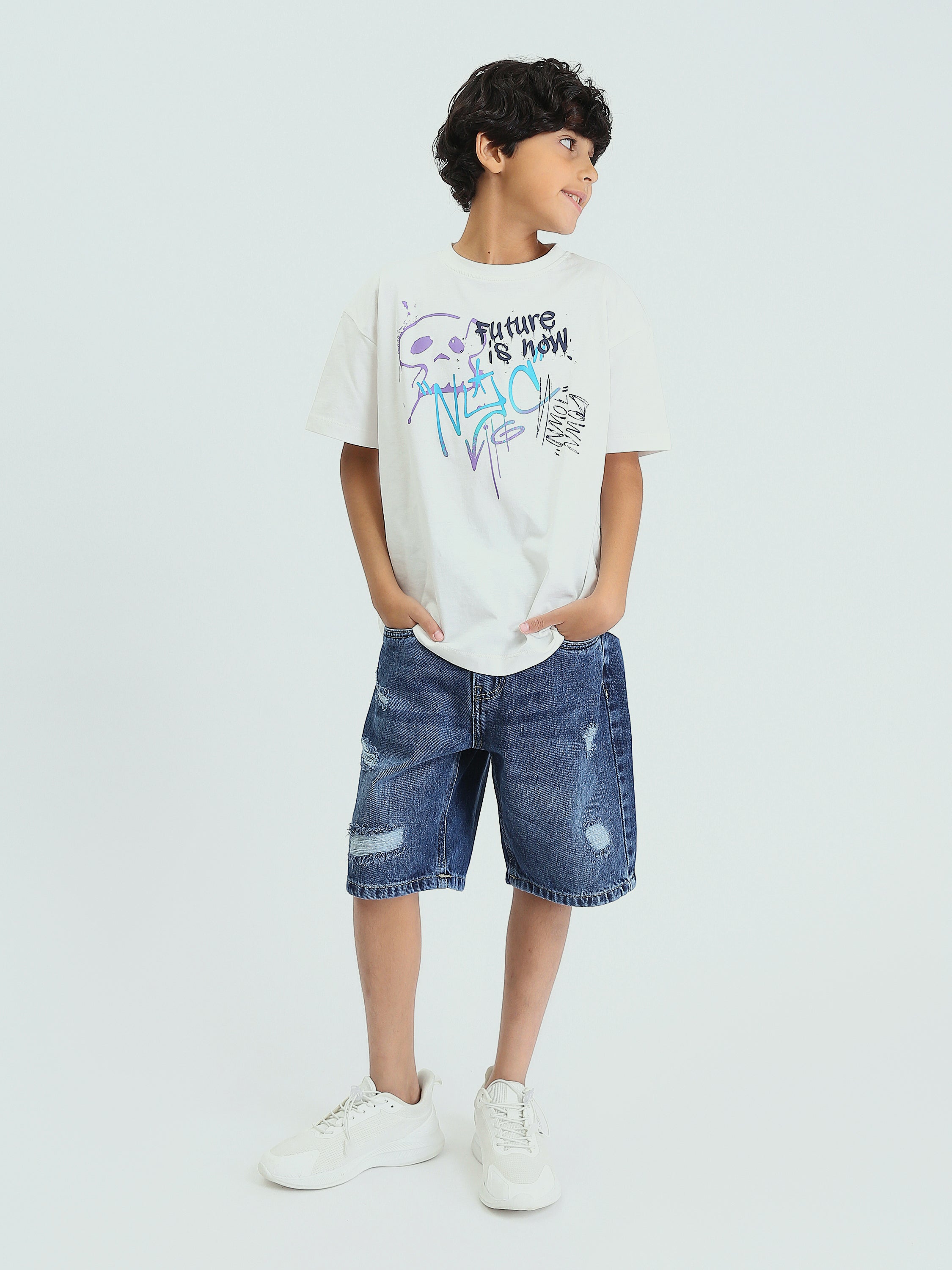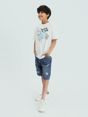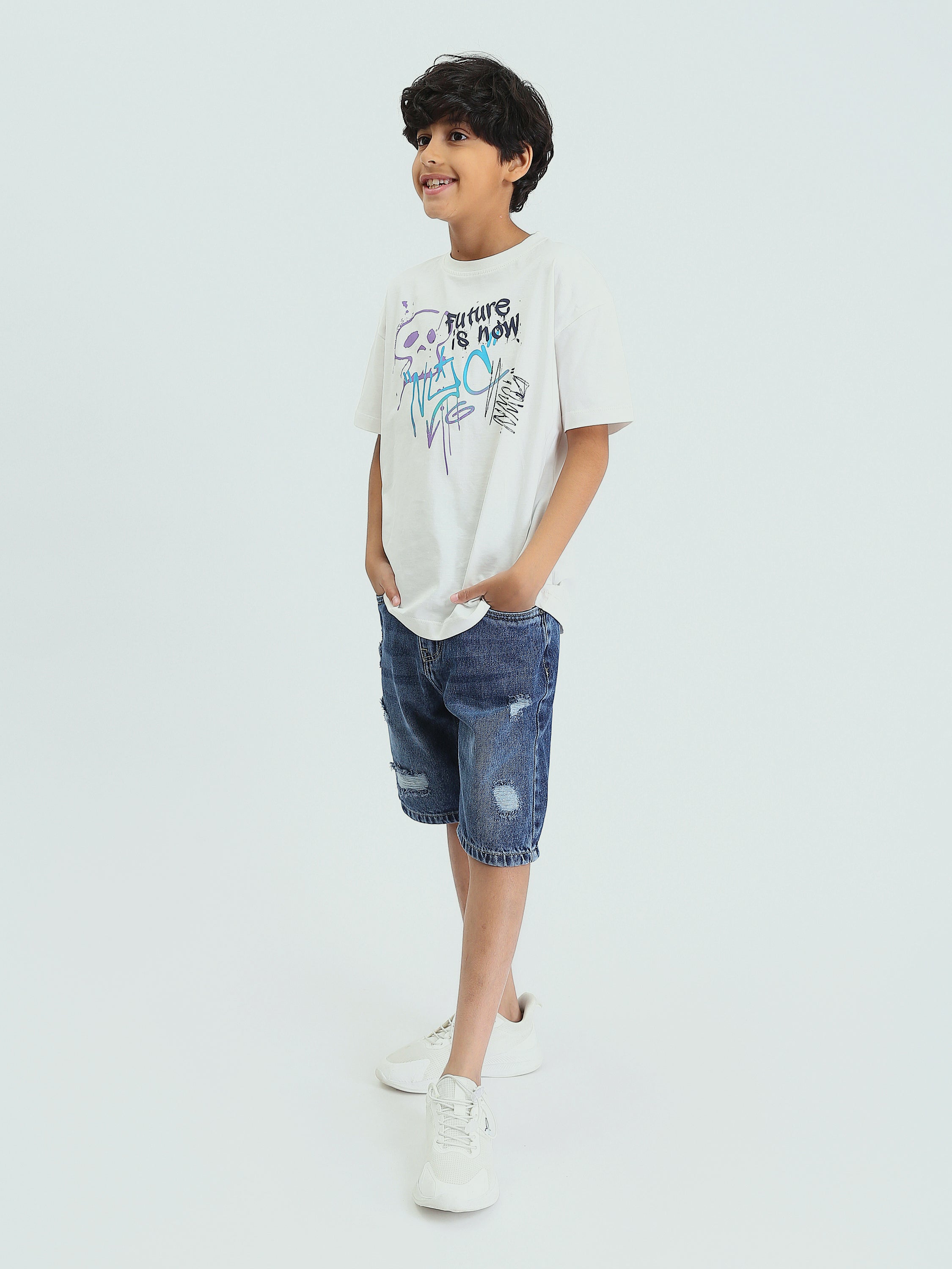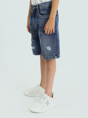 Short en jean pour enfants de couleur bleu foncé, avec un design moderne et des détails de déchirures sur les côtés pour une touche d'élégance et de fun. Fabriqué dans un tissu en jean léger et confortable, ce short est parfait pour l'été et les activités quotidiennes. Il est équipé d'une taille élastique avec des boutons pour plus de confort, et se coordonne facilement avec un t-shirt ou une chemise décontractée pour un look confortable et élégant.