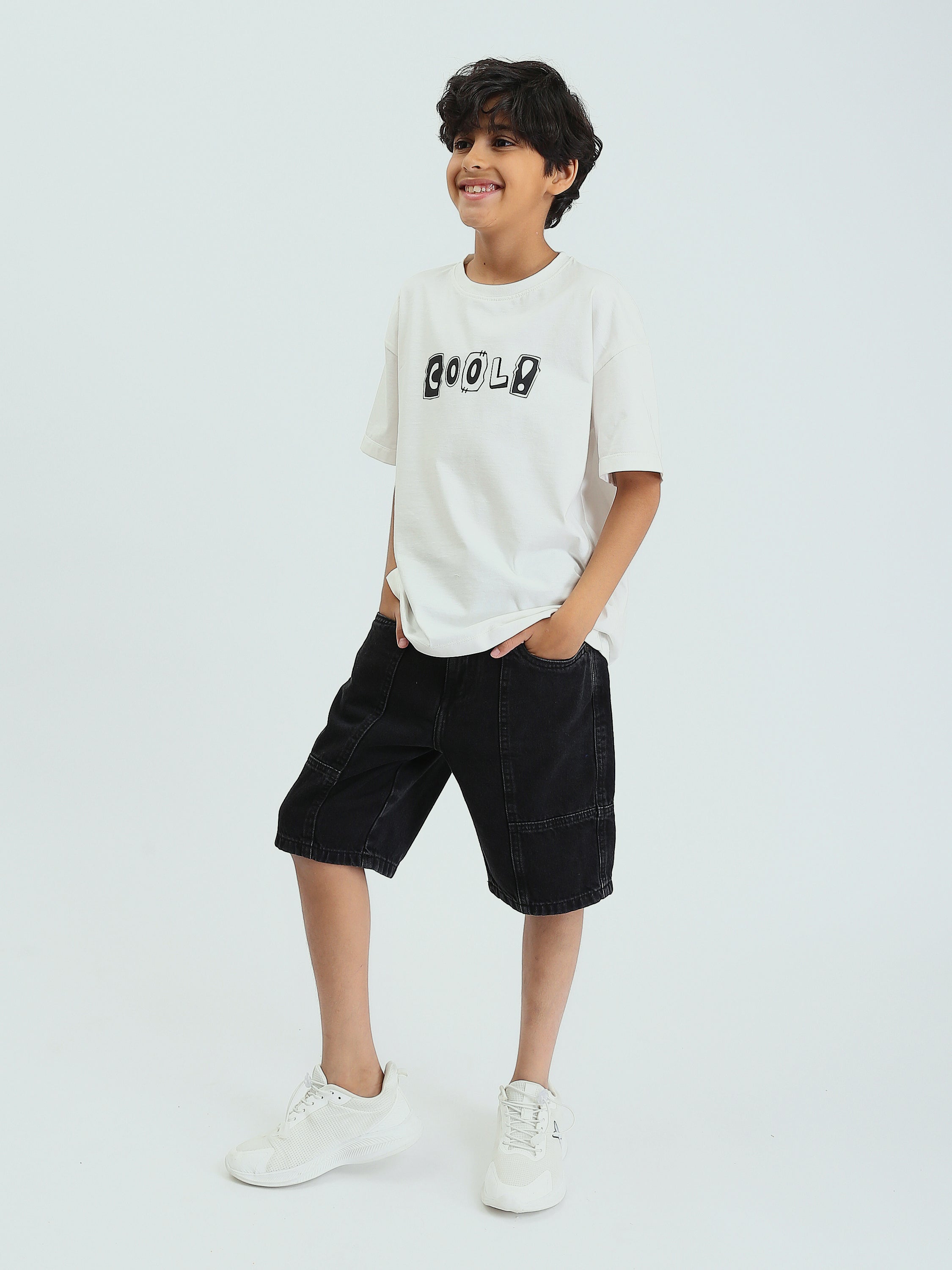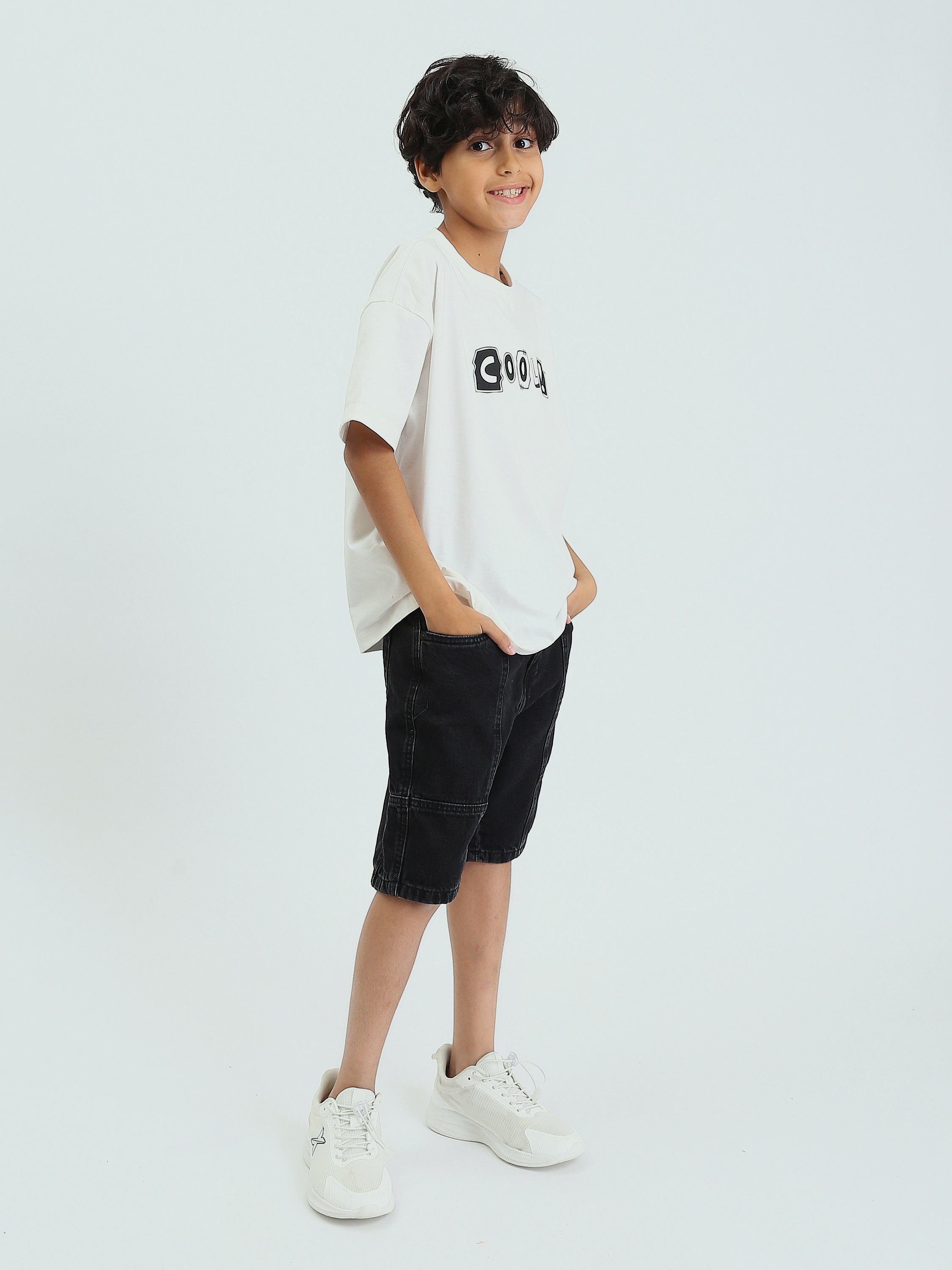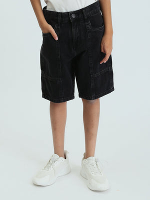 Short en jean pour enfants de couleur noire, avec un design moderne et des poches latérales pour plus de confort. Fabriqué à partir de denim de haute qualité, ce short assure un confort optimal pendant les journées chaudes. Il est équipé d'une taille élastique pour un ajustement parfait et une facilité d'enfilage, ce qui en fait un choix idéal pour les looks quotidiens ou les activités décontractées. Il se coordonne facilement avec un t-shirt ou une chemise pour un look confortable et élégant.