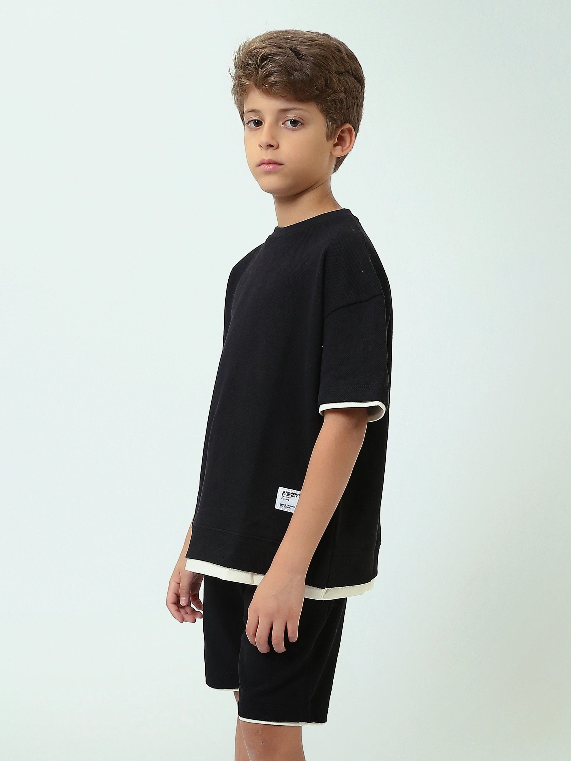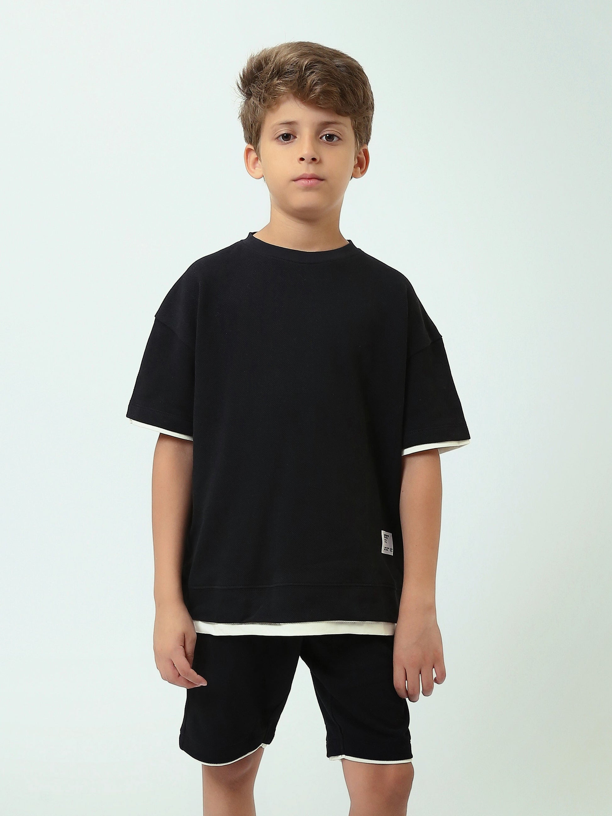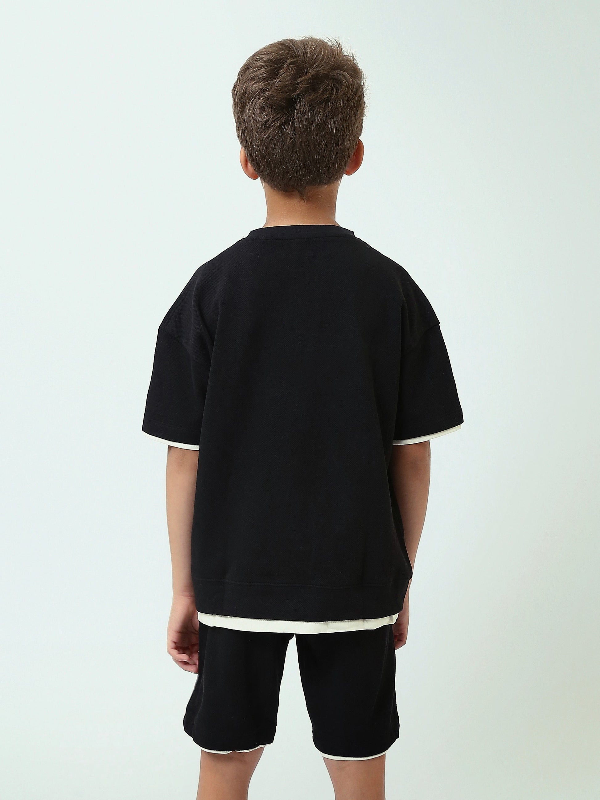 Ensemble t-shirt et short garçon noir à liserés contrastés – Look sportif et confortable - TST25SSPT15026TB1