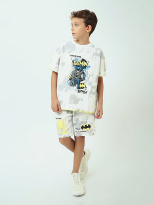 Ensemble t-shirt et short garçon Batman imprimé – Off White, style décontracté - TST25SSAP50012TB1