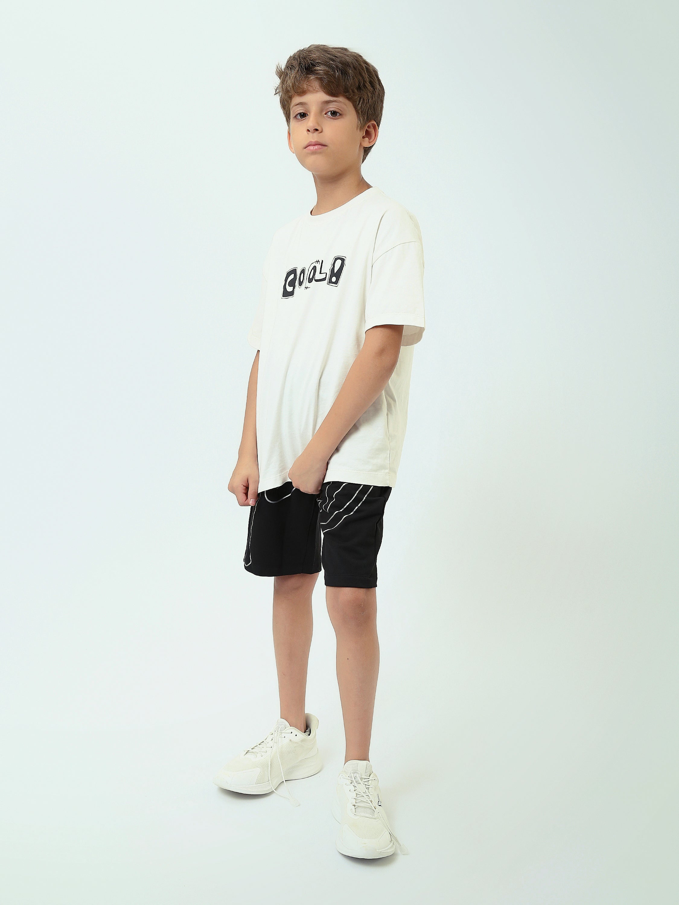 Ajoutez une touche d'élégance et de confort au look de votre enfant avec ce short moderne, orné d'une impression audacieuse sur les côtés. Ce short présente un design confortable avec une taille élastique et un cordon de serrage réglable, garantissant un ajustement parfait et un confort tout au long de la journée. Idéal pour les activités quotidiennes et les occasions décontractées, il combine style et confort, faisant de lui le choix parfait pour l'été, pour un look confiant et distinctif.