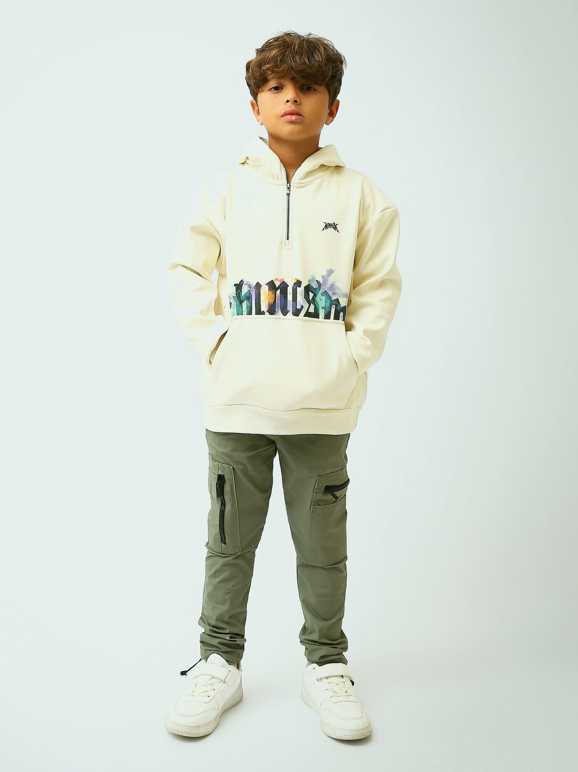 Sweat à capuche garçon avec demi-zip et imprimé graffiti - SWS26WHNK31562TB1