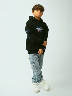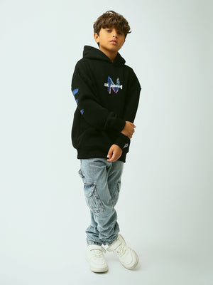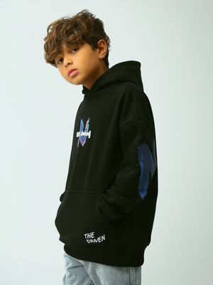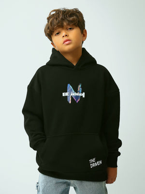 Sweat à capuche garçon noir avec imprimé “Be Ideal” et détail “The Driven”, style streetwear - SWS26WHNK31629TB1