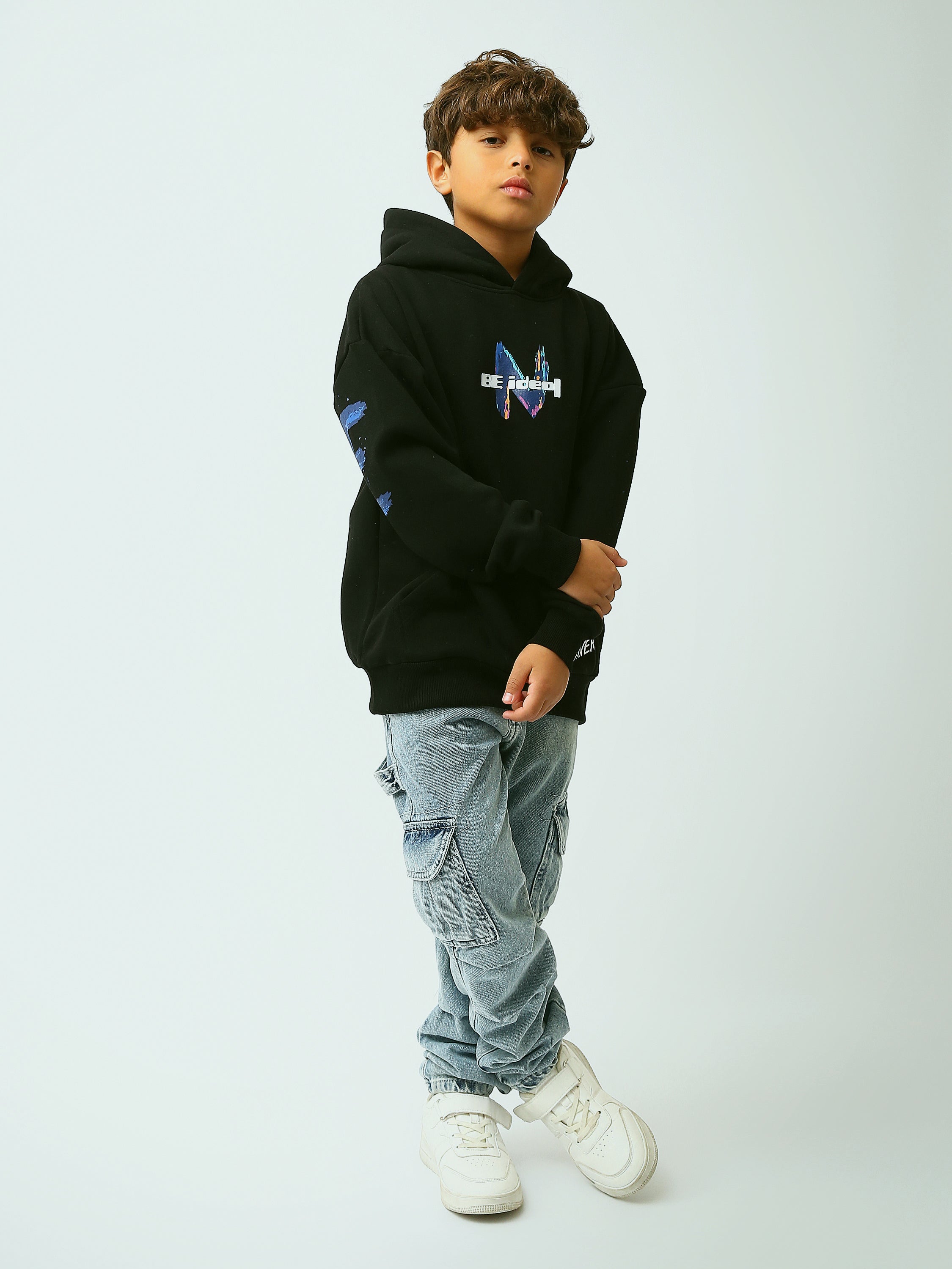Ce sweat à capuche noir pour garçon est parfait pour un look urbain moderne, facile à porter au quotidien. Sur le devant, l’imprimé “Be Ideal” avec une touche colorée apporte un style tendance, tandis que le détail “The Driven” en bas ajoute une finition originale. Conçu pour le confort, il possède une capuche protectrice, une poche kangourou pratique et une coupe agréable qui accompagne tous les mouvements. Idéal pour l’école, les sorties ou les journées fraîches, il s’associe facilement avec un jean ou un pantalon cargo.