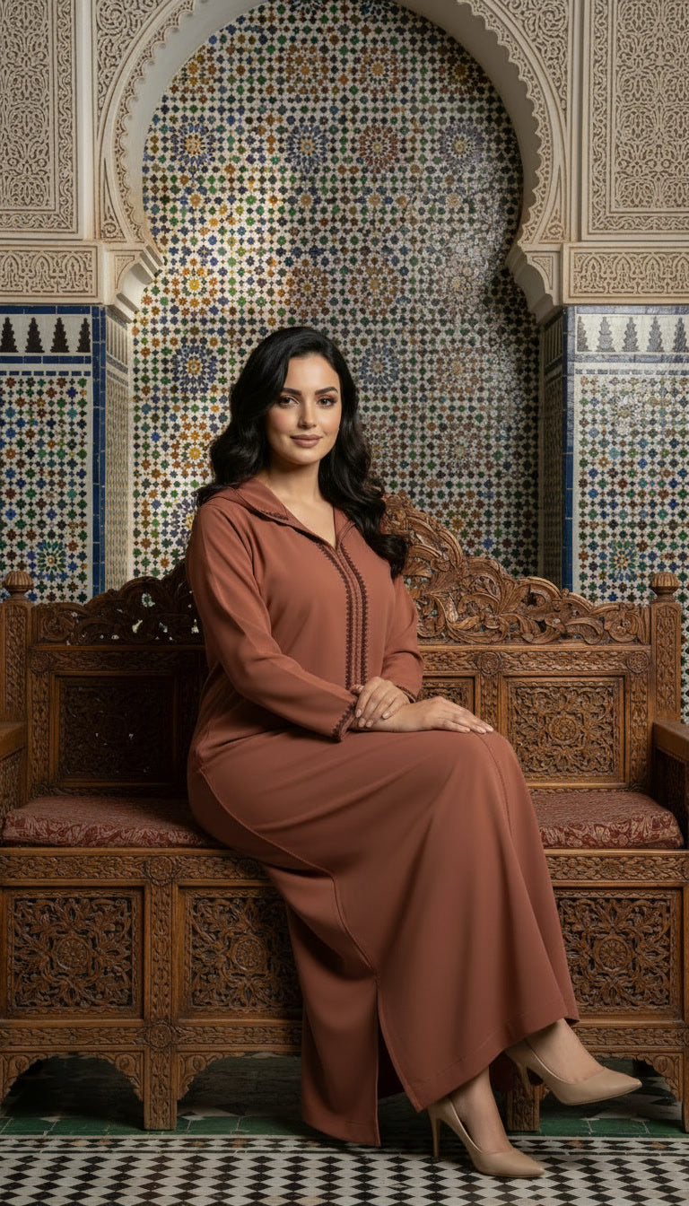 Djellaba Élégante en Crêpe Rosa – Marron Chic