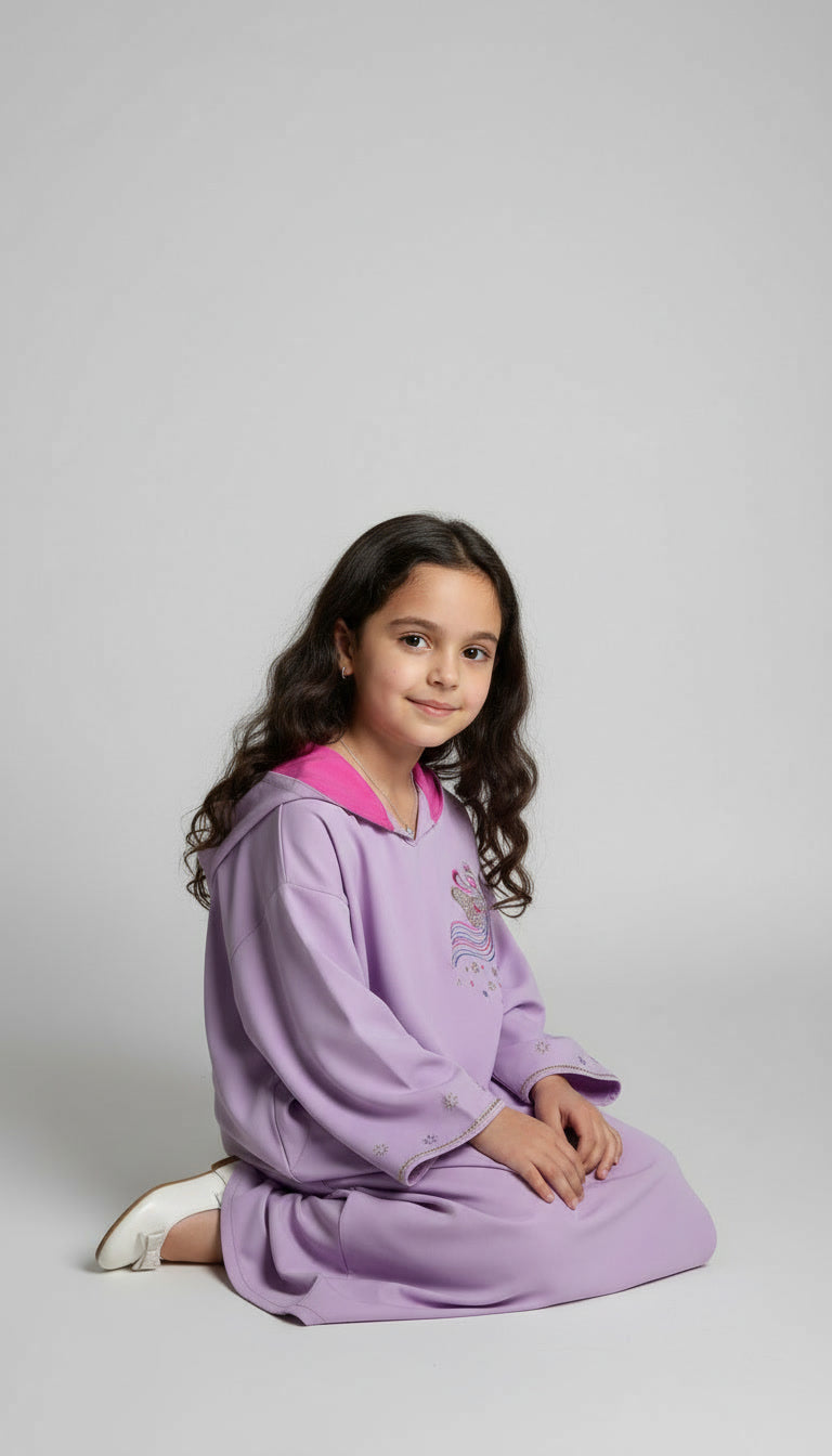 Une djellaba makhzania douce et confortable avec un joli motif licorne brodé.