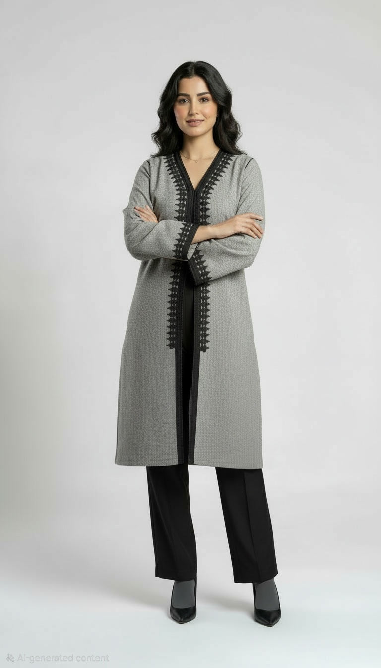 Découvrez ce kimono forme simple en tissu Chanel, une pièce élégante qui combine sobriété moderne et inspiration artisanale marocaine.