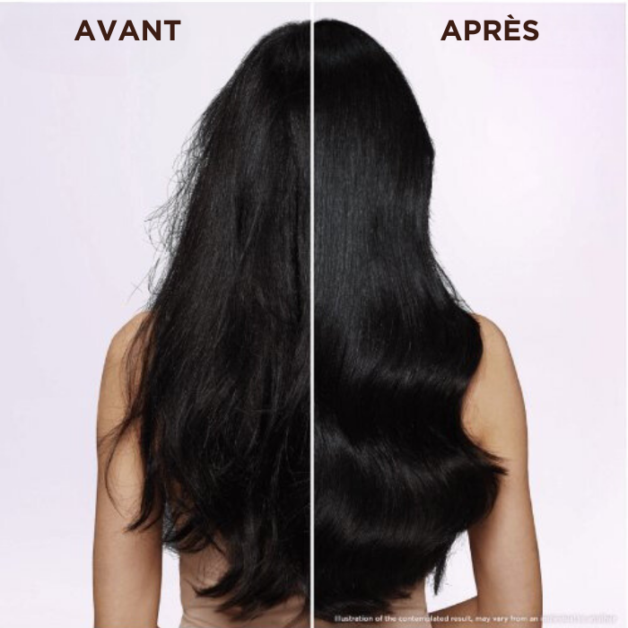 Résultats : les cheveux sont lisses et ultra brillants jusqu'à 72h*. *Test instrumental après l'application du shampooing + après-shampooing