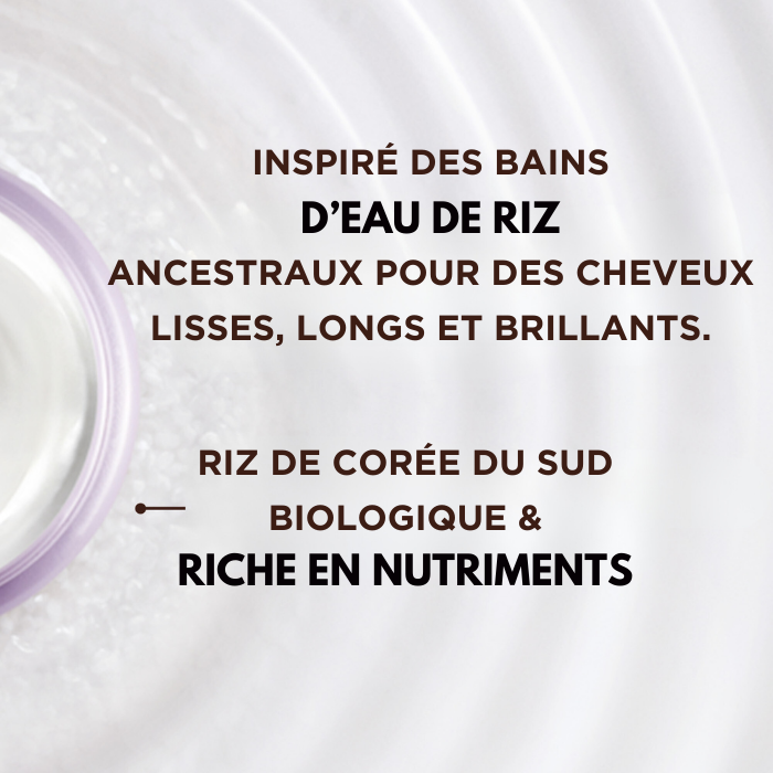 Formulation à base d'amidon et d'infusion d'Eau de Riz riche en nutriments, Apporte brillance et douceur tout en luttant contre les frisottis, Sans produits ou sous-produits d'origine animale