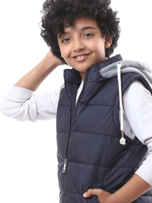 Gilet garçon matelassé au design pratique, offrant une chaleur agréable sans limiter la liberté de mouvement, idéal pour les sorties quotidiennes par temps frais. Il est doté d’une capuche avec cordon de serrage pour un ajustement optimal, ainsi que d’une fermeture zippée à l’avant facilitant l’enfilage et le retrait. Confectionné dans une matière légère et confortable, il dispose de poches zippées permettant de ranger les petits objets en toute sécurité. Une pièce essentielle qui assure à votre enfant une allure moderne et confortable en toute saison.