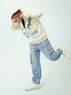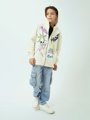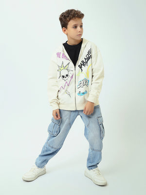 Un sweat à capuche zippé au style urbain, parfait pour les garçons qui aiment les looks tendance. Ce modèle se distingue par ses imprimés graphiques esprit street/skate (motifs, flèches, lettrages) qui apportent une vraie touche de caractère. Grâce à sa fermeture zippée, il est pratique à enfiler et idéal pour la mi-saison comme pour les journées fraîches. Il s’associe facilement avec un jean ou un jogging pour un look casual cool.